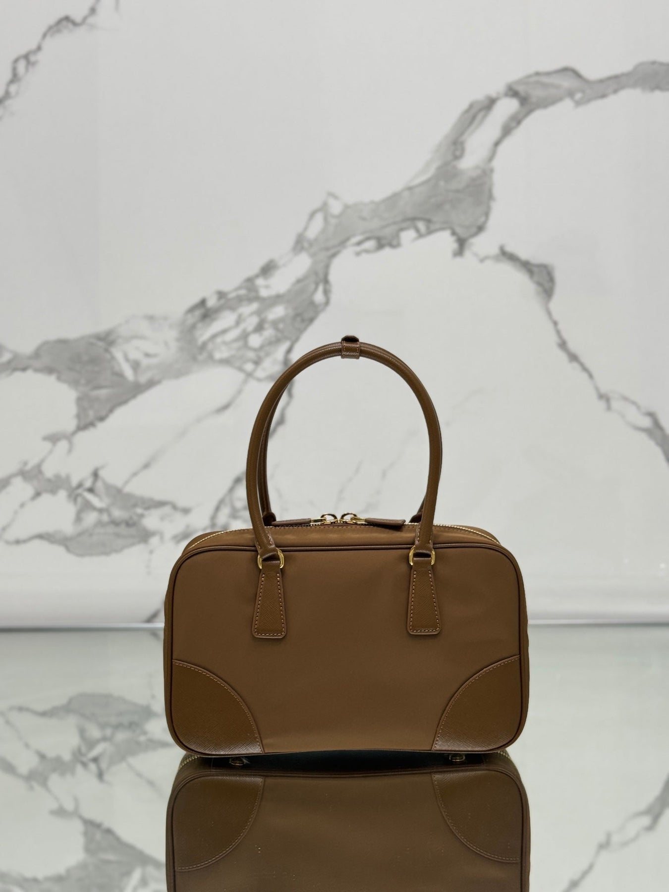MEDIUM TOP HANDLE BAG 30 IN CHERRY WOOD NYLON AND CALFSKIN TRIM