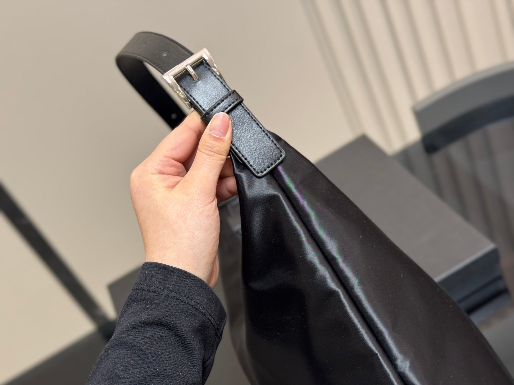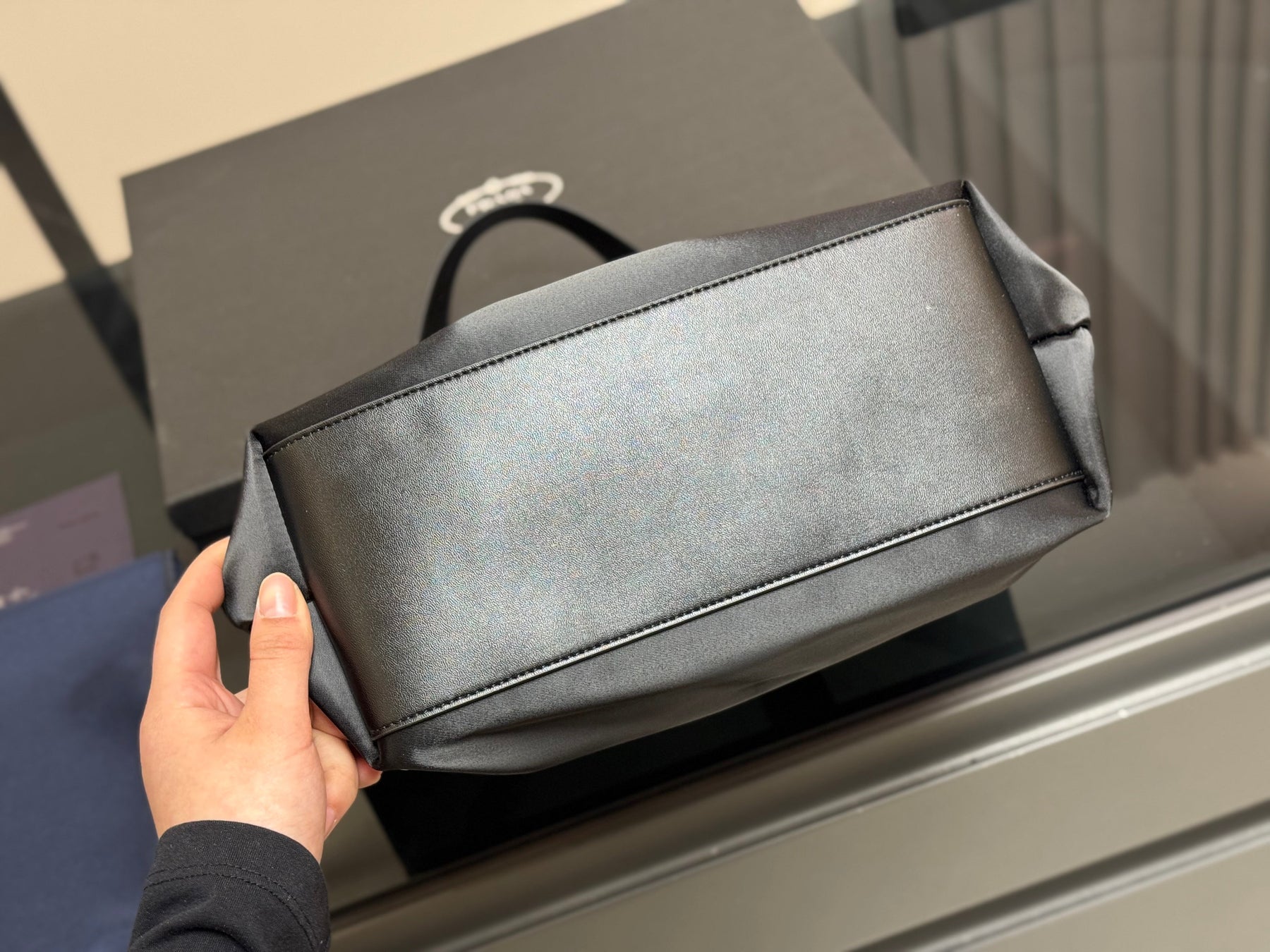 MEDIUM TOTE BAG 31 IN BLACK RE-NYLON WITH CALFSKIN STRAP