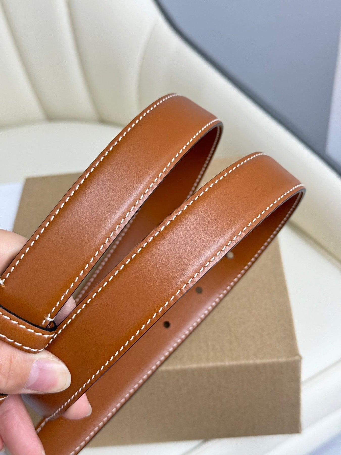 MEDIUM TRIOMPHE BELT 25MM BRONZE BROWN LEATHER SILVER HARDWARE