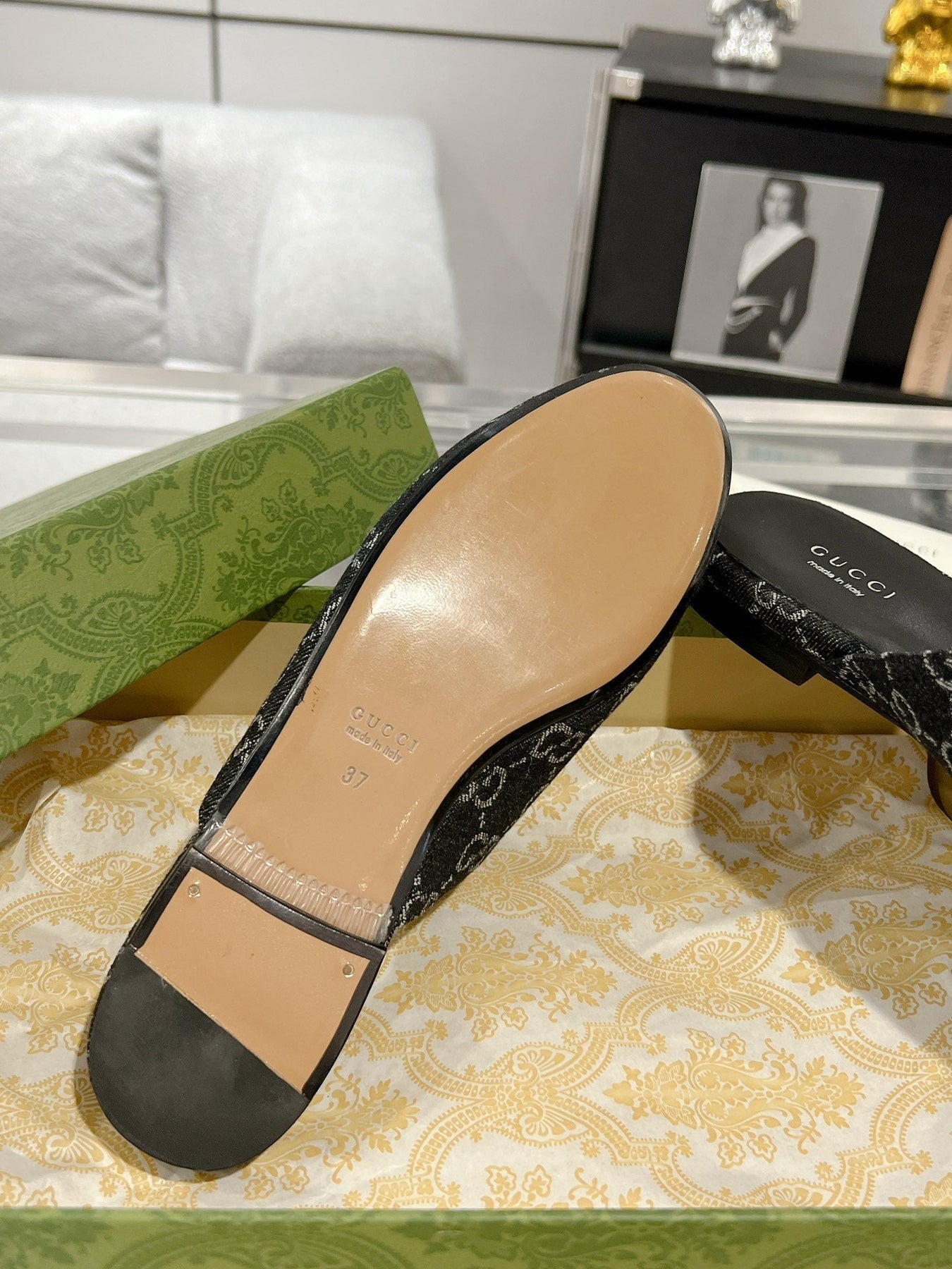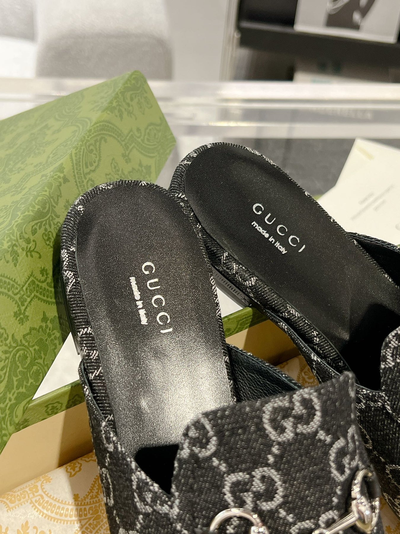 MEN'S MULE WITH HORSEBIT IN BLACK MONOGRAM JACQUARD FABRIC