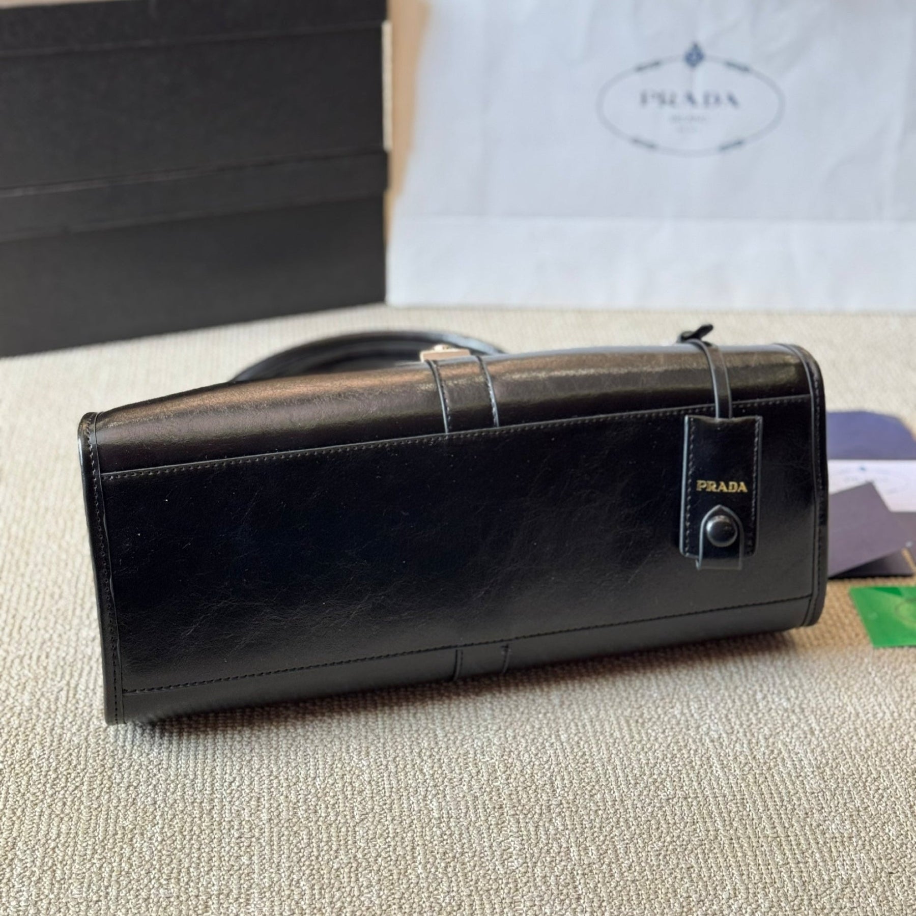 METAL CLASP MINI TOTE BAG 25 IN BLACK SHINY SMOOTH CALFSKIN