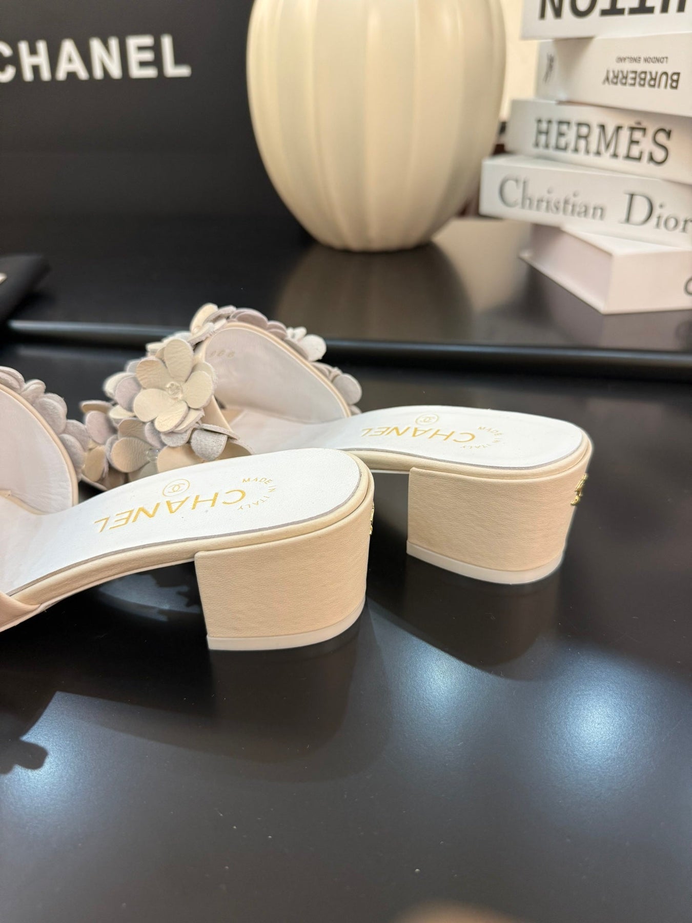 MID HEEL 45 MM MULE IN WHITE CALFSKIN