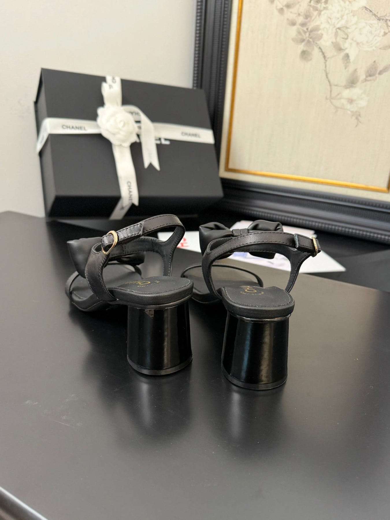 MID HEEL 45 MM SANDALS IN BLACK CALFSKIN