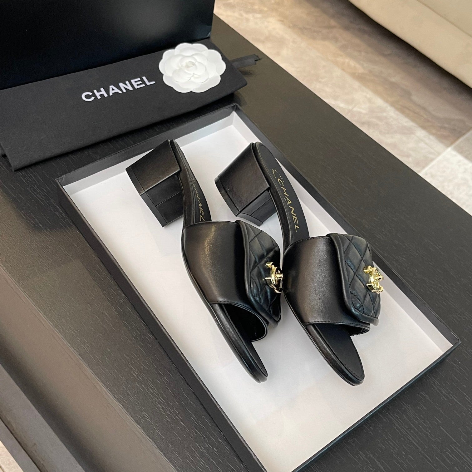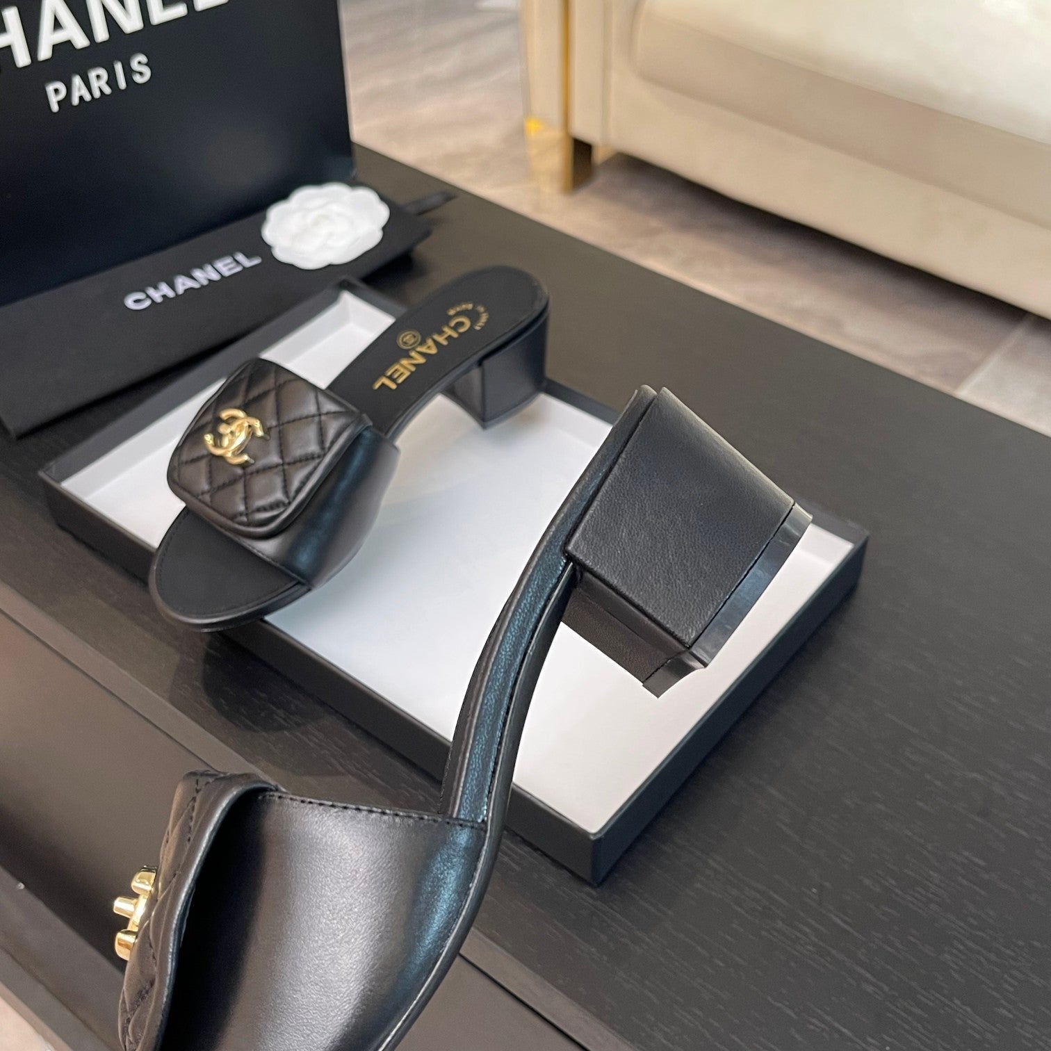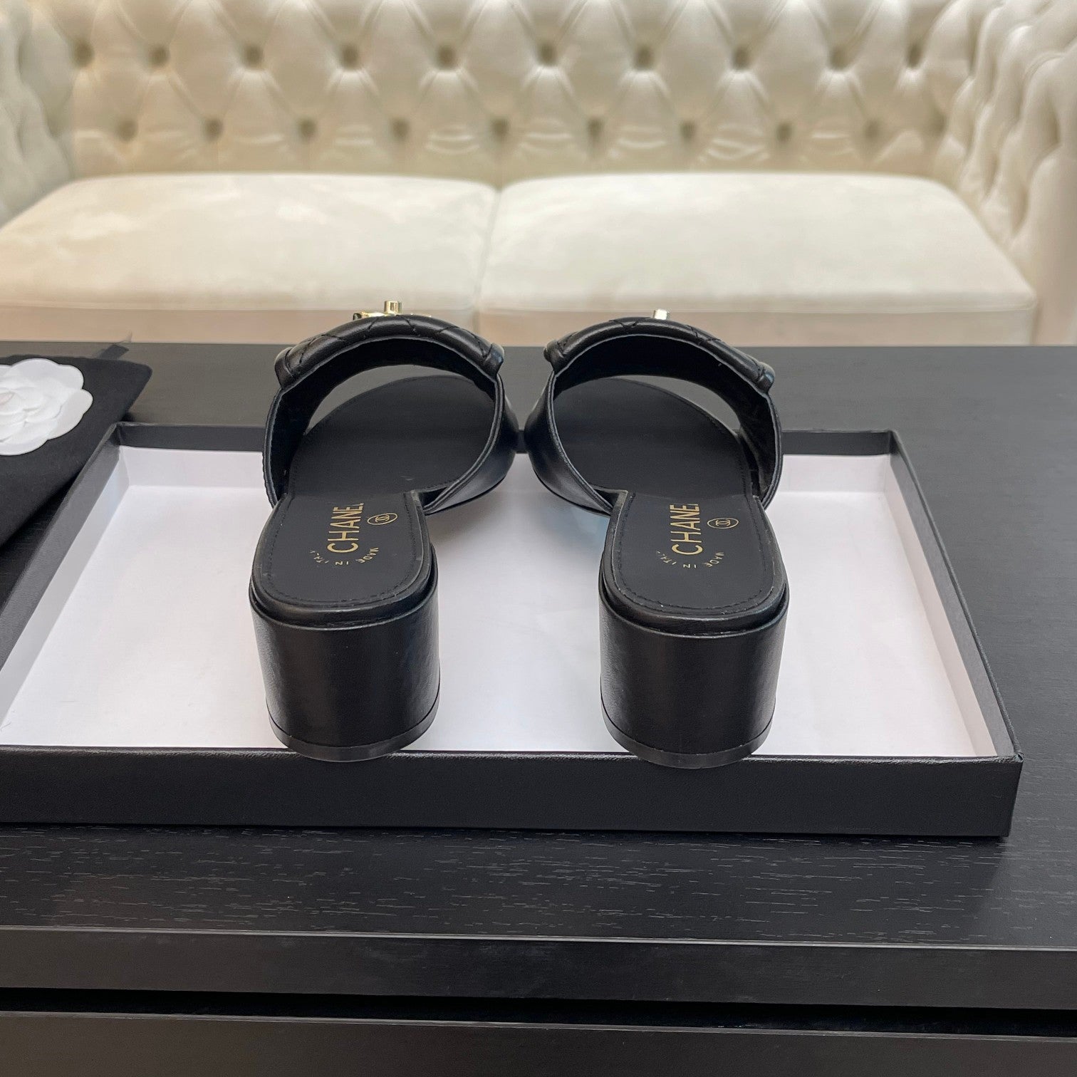 MID-HEEL 5 CM MULE IN BLACK LAMBSKIN