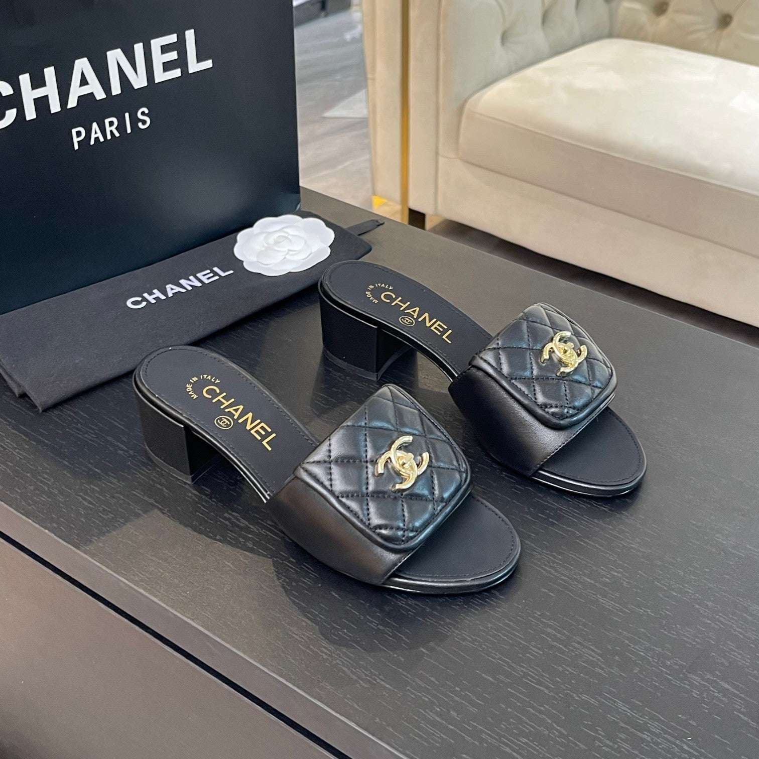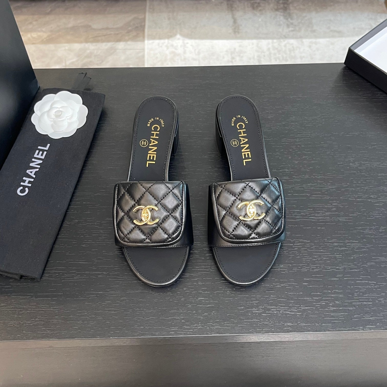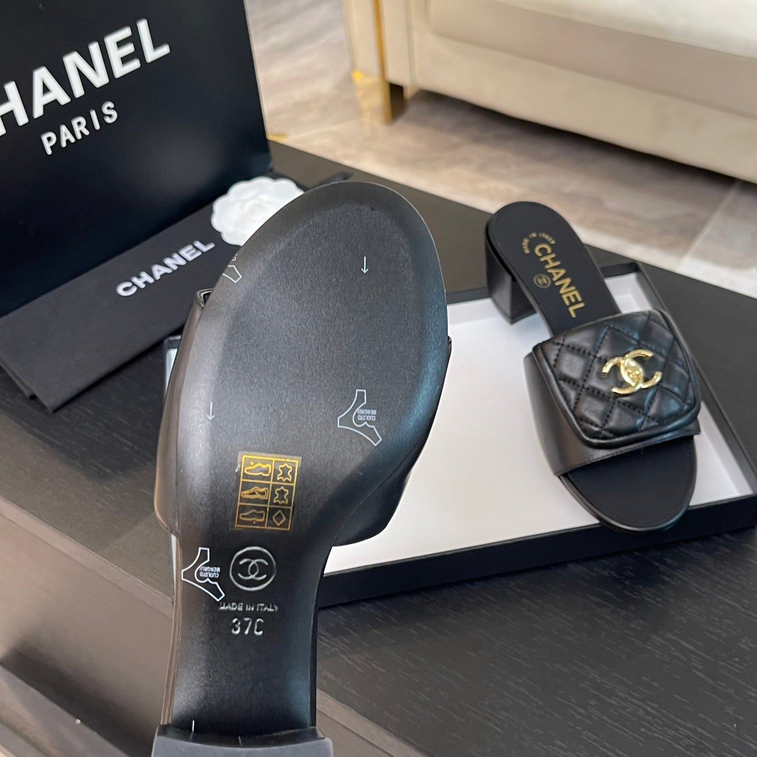 MID-HEEL 5 CM MULE IN BLACK LAMBSKIN