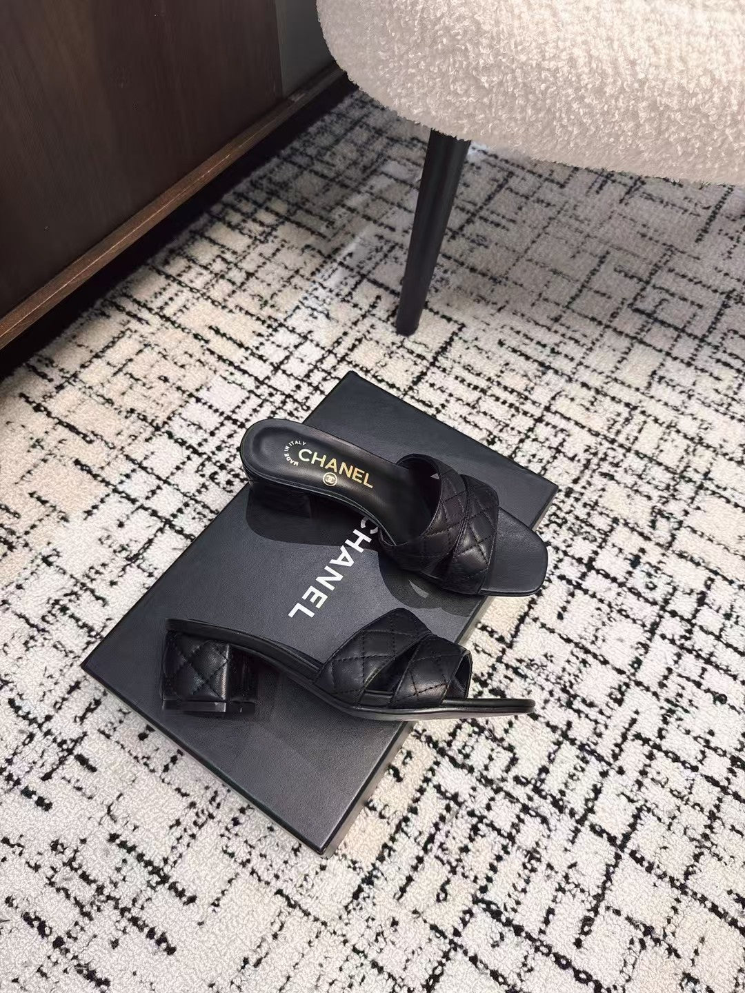 MID HEEL MULES IN BLACK SHEEPSKIN