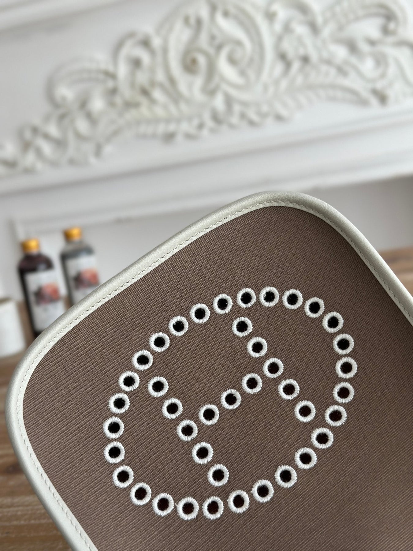 MINI NEO 17 EVELYNE BAG IN WENGE BROWN CANVAS AND WHITE CALFSKIN