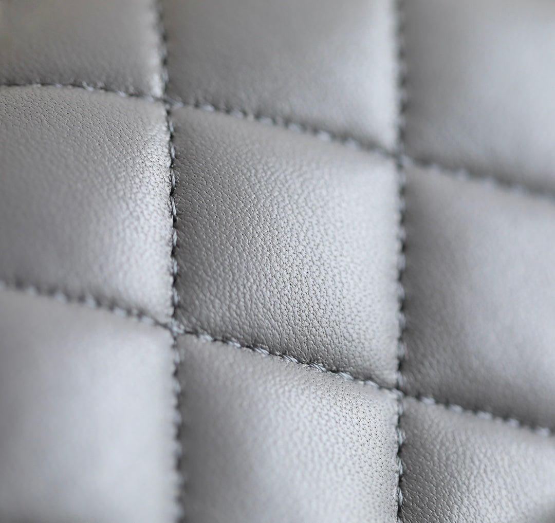 MINI RECTANGLE FLAP BAG TOP HANDLE 20CM GREY LAMBSKIN SILVER HARDWARE