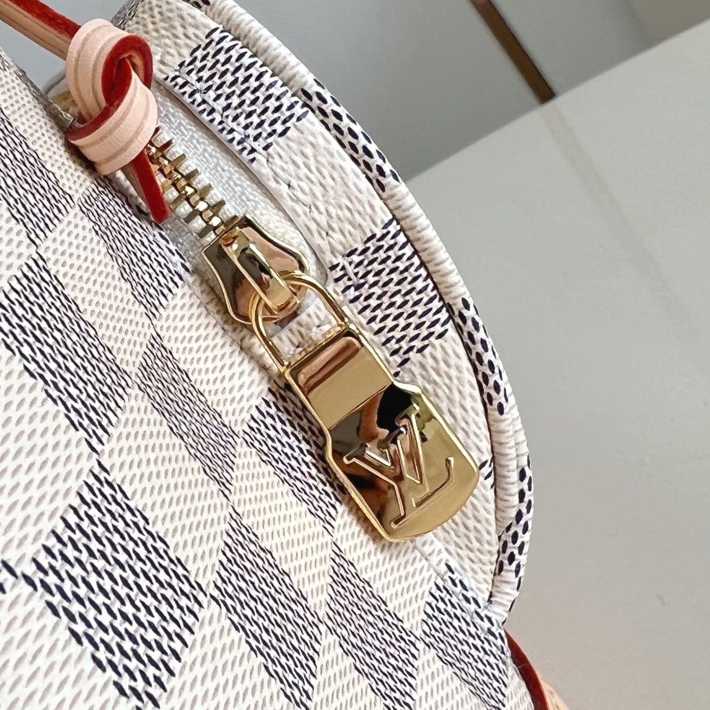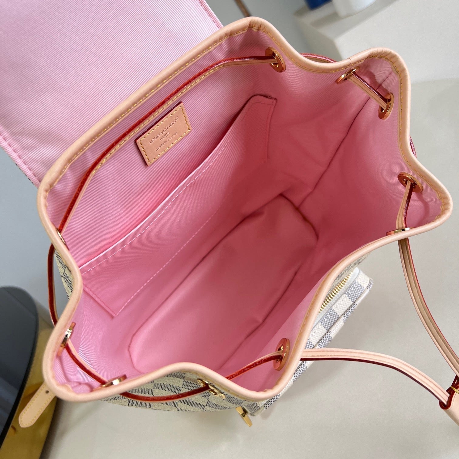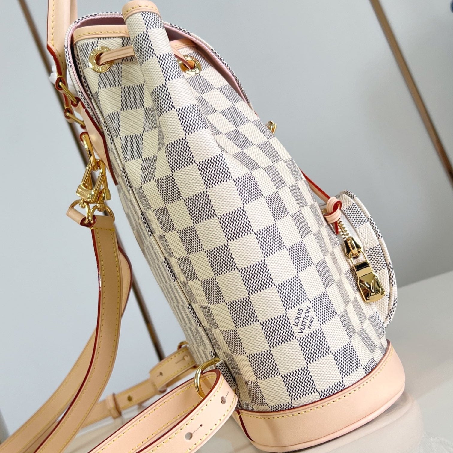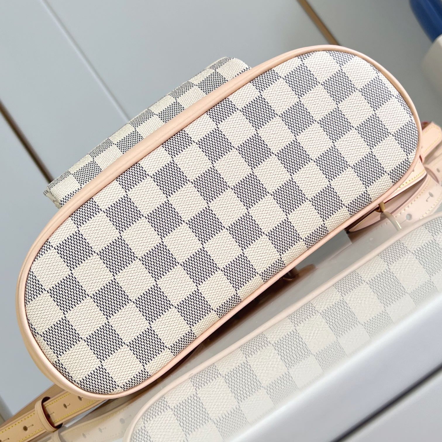 MONTSOURIS BACKPACK PM 30 IN WHITE GREY CHECKERBOARD PATTERN DAMIER AZUR COATED CANVAS