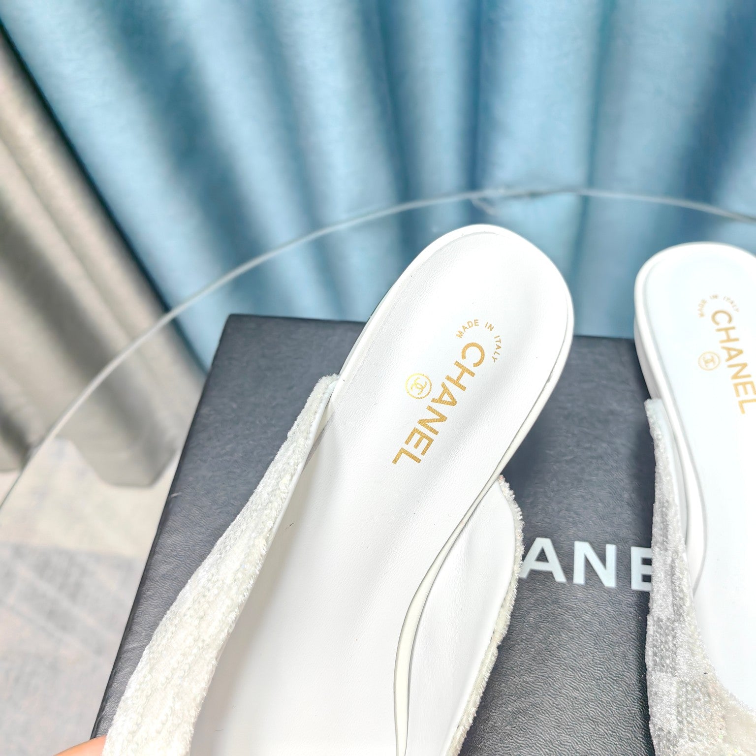 MULE IN WHITE SATIN MIX BLACK LAMBSKIN