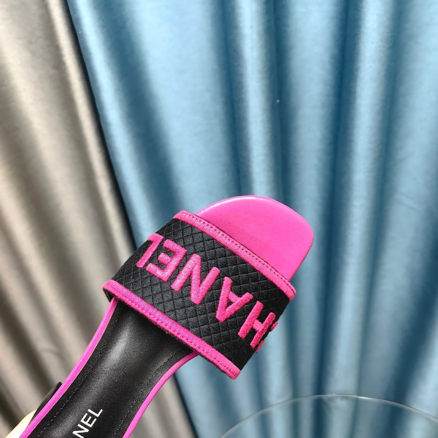 MULE SANDAL 45 BLACK PINK FABRIC EMBROIDERY