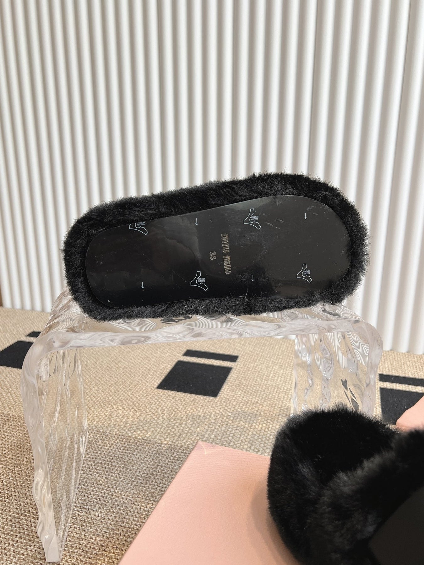 MULES IN BLACK RABBIT FUR SILVER HARDWARE
