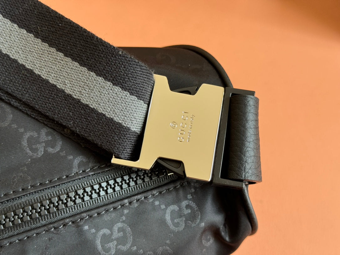 NYLON LINE BODY BAG 27 IN BLACK GG CANVAS