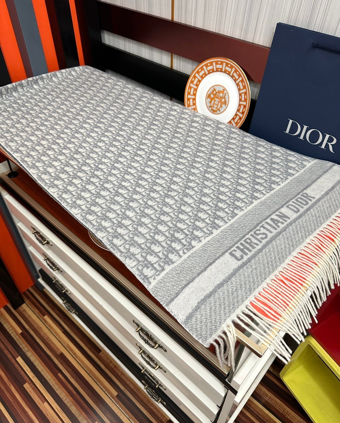 OBLIQUE 190 CM SCARF IN LIGHT GREY TECHNICAL CASHMERE 415487