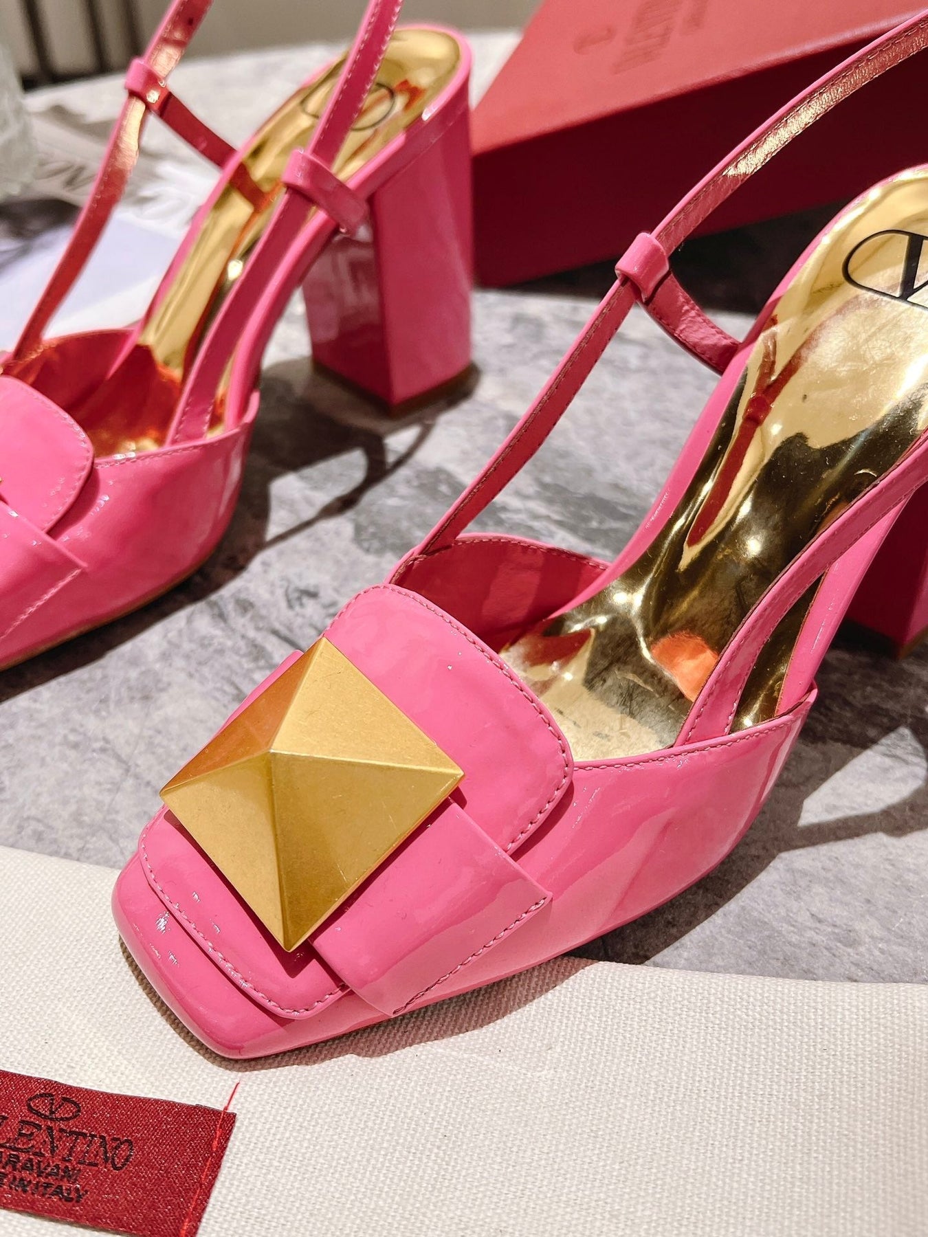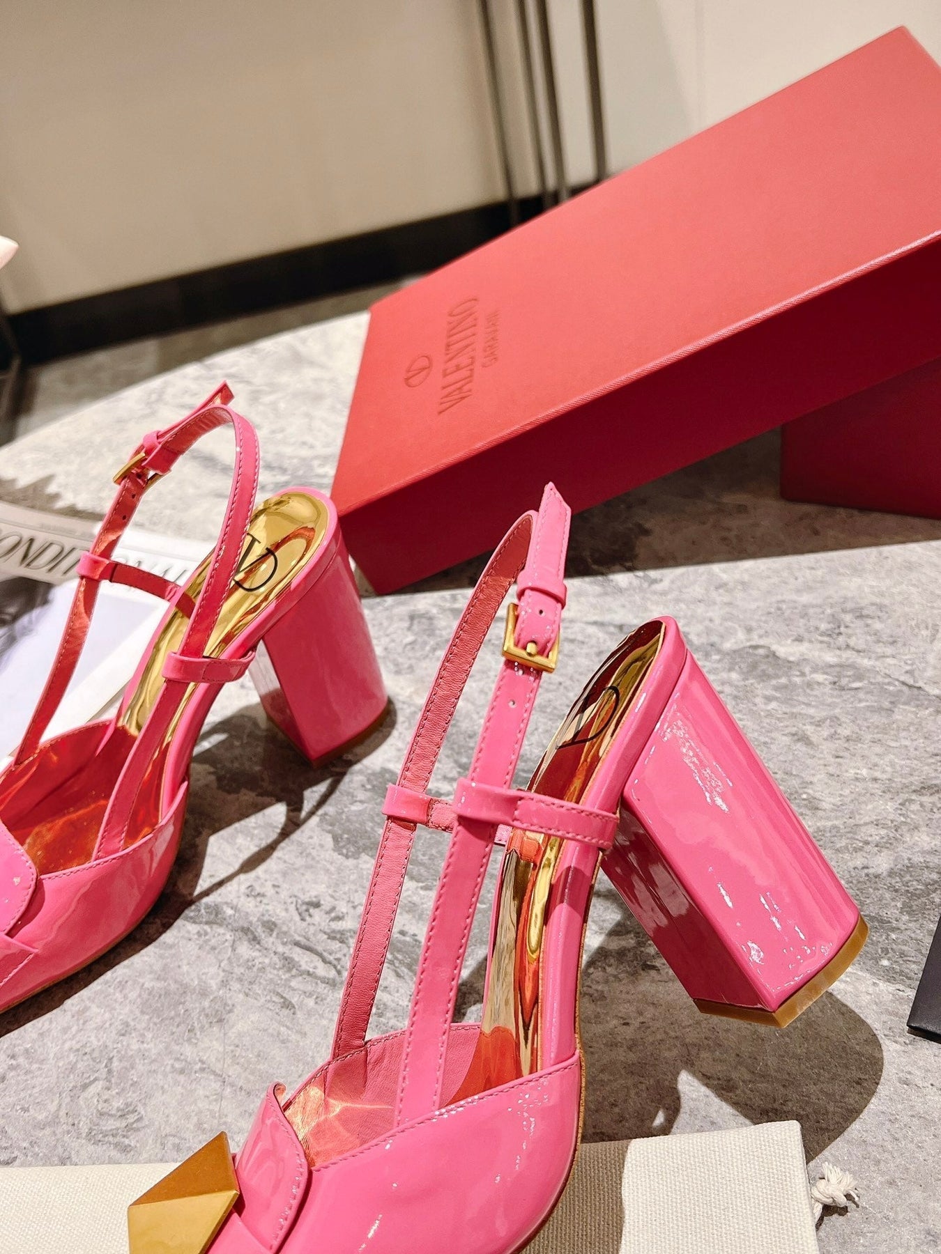 ONE STUD BRIGHT PINK PATENT LEATHER LACE-UP HIGH HEELS 85 MM