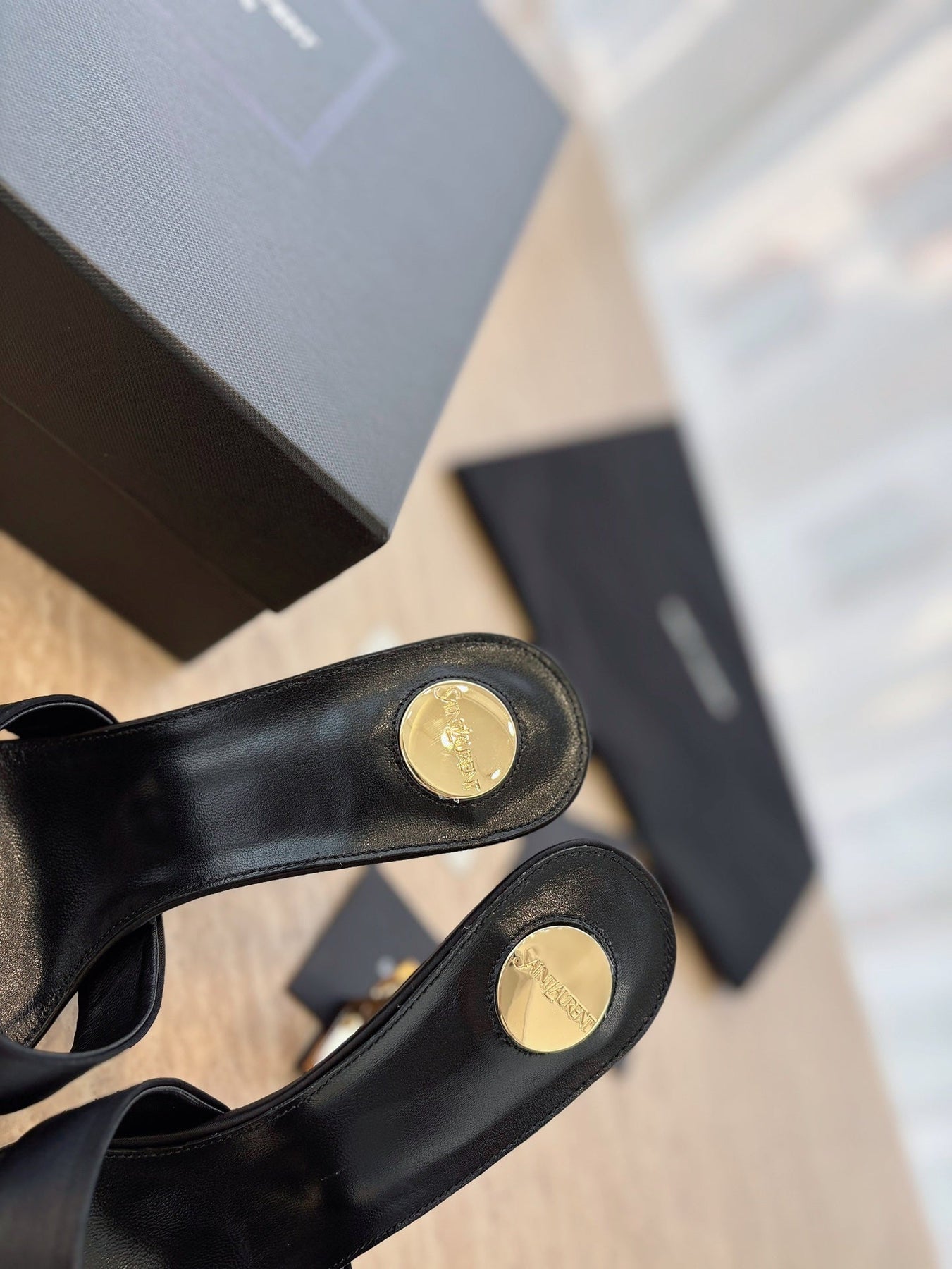 OPYUM OPEN TOE HIGH 10 CM MULES IN BLACK CALFSKIN