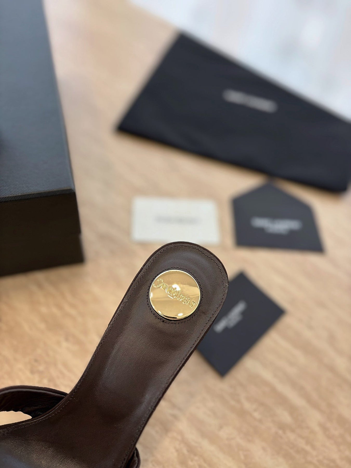 OPYUM OPEN TOE HIGH 10 CM MULES IN CHOCOLATE BROWN CALFSKIN