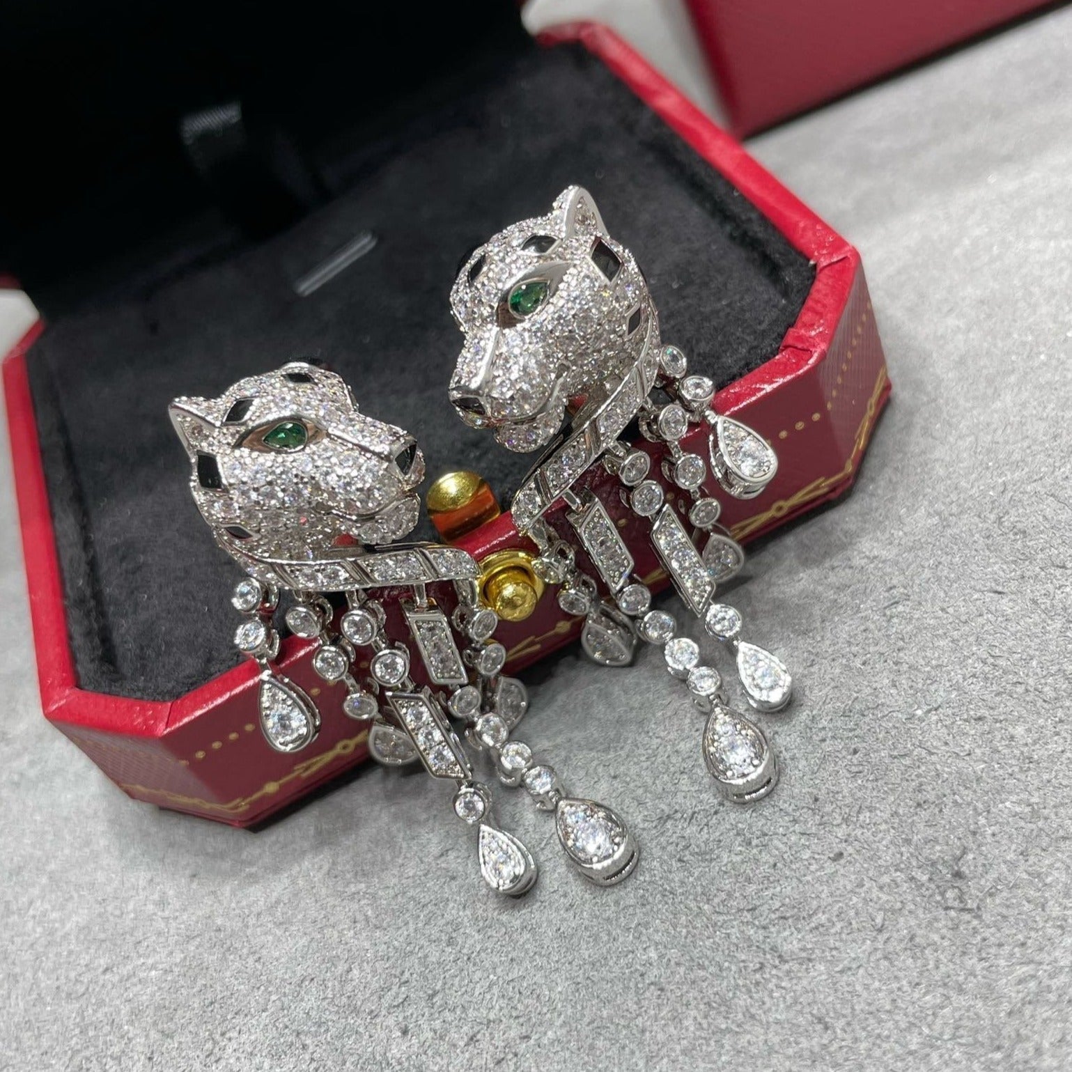 PANTHERE ONYX MALCHITE DIAMOND DROP EARRINGS