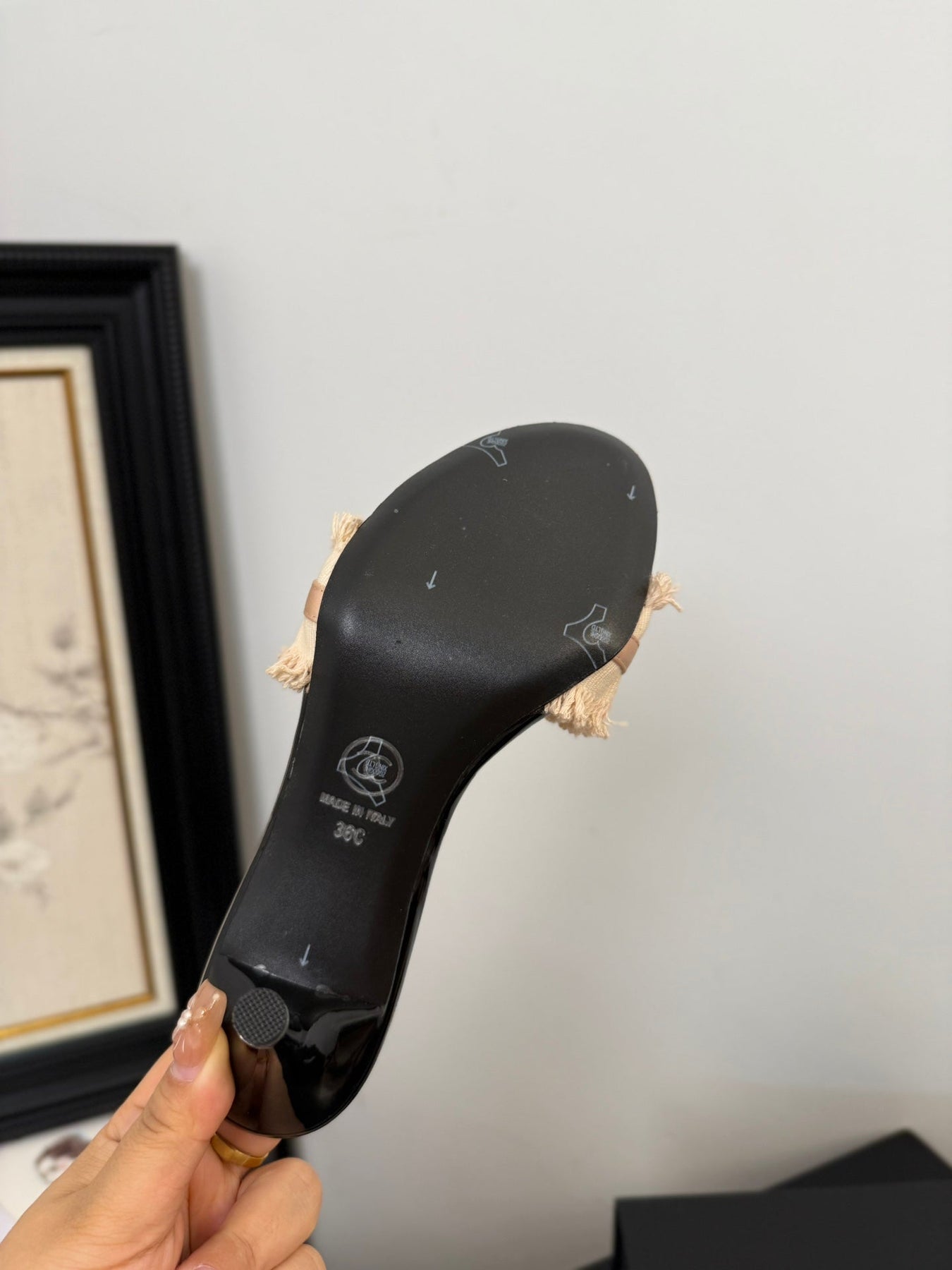 PEACH PINK GROSGRAIN CANVAS BOW MULE SANDALS 90 MM