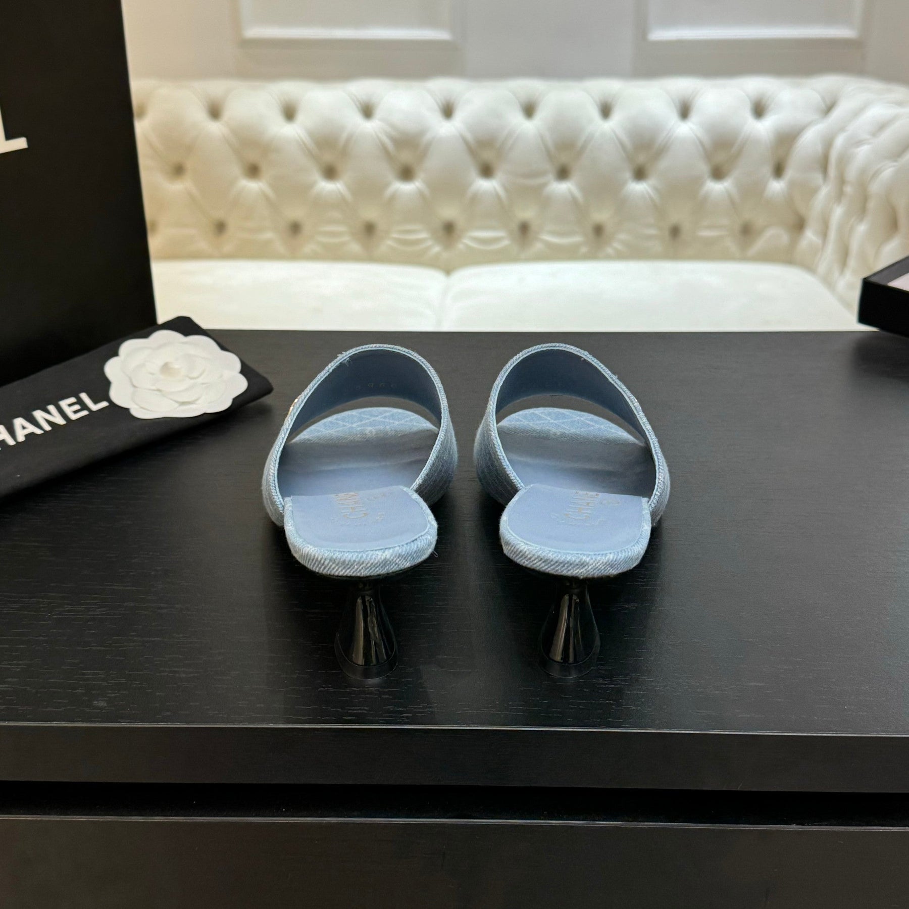 PEEP TOE MULE 55MM IN SKY BLUE DENIM CHECKERED AND LOGO