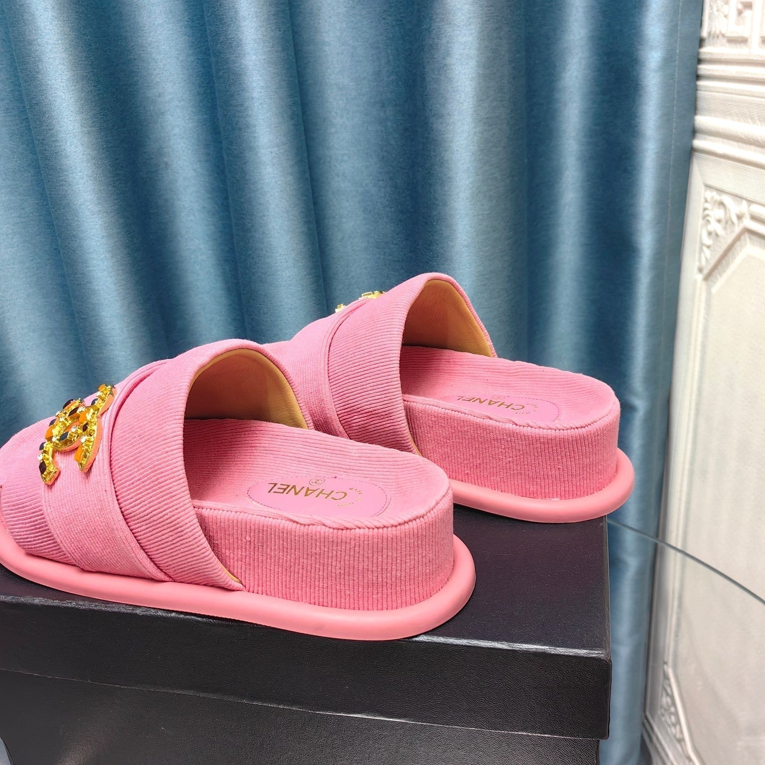 PLATFORM HEELS SANDALS IN LIGHT PINK WOOLEN FABRIC
