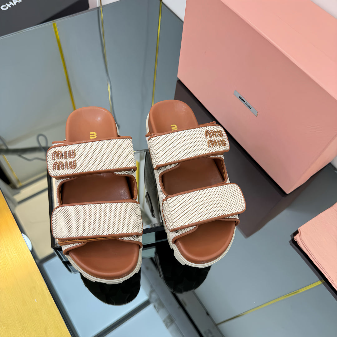 PLATFORM SANDALS IN BROWN EVA SOLE WHITE WITH BROWN POLKA DOTS