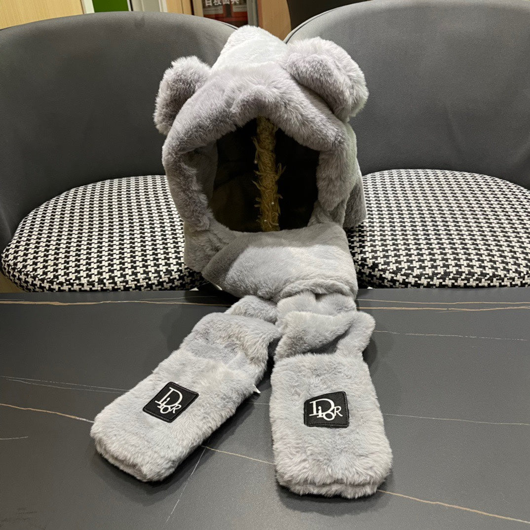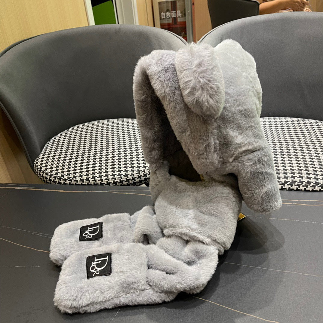 PLUSH WARM HAT IN GRAY RABBIT FUR WITH FOX EARS 439586