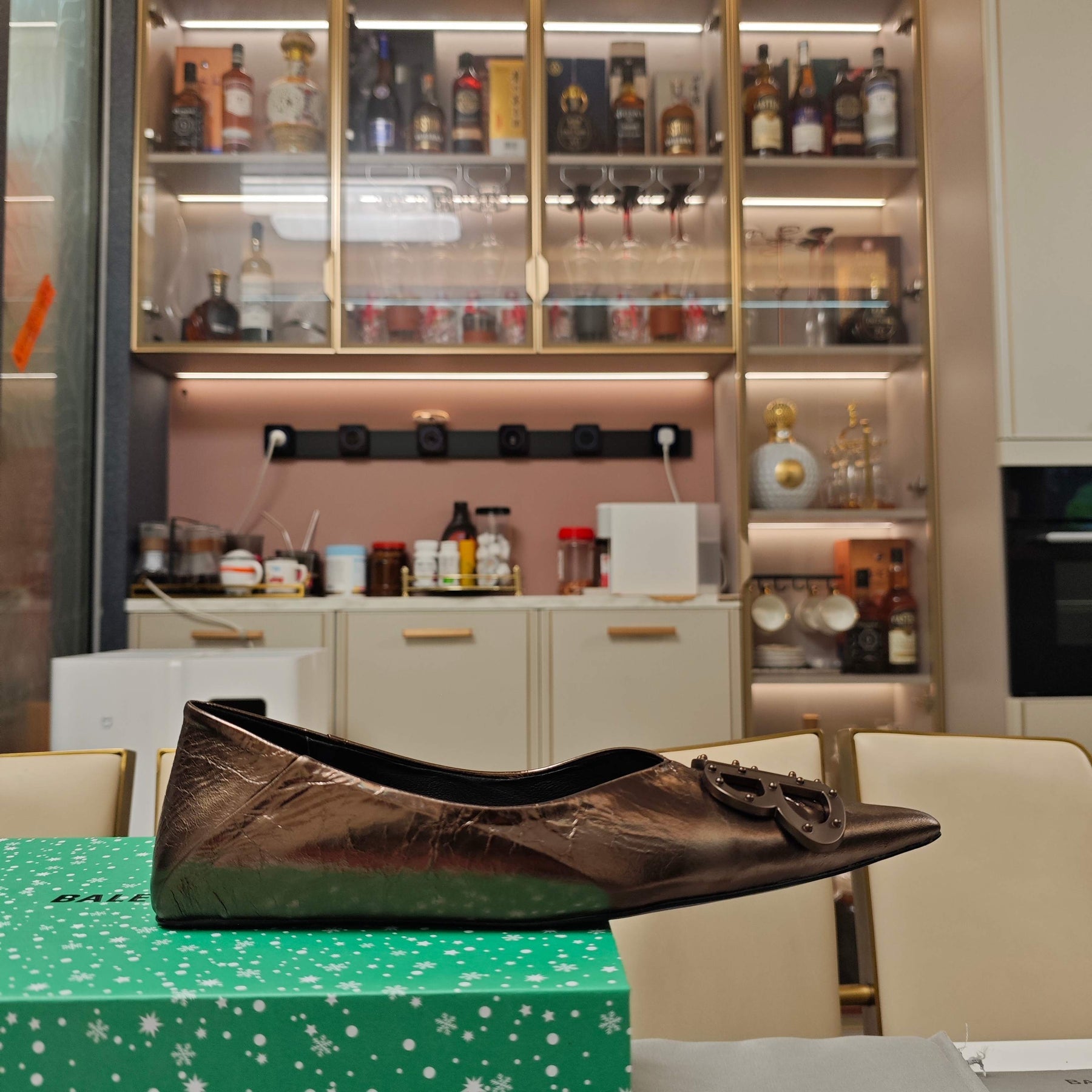 POINTED BALLET FLATS IN CHOCOLATE SHINY CRACKED SHEEPSKIN