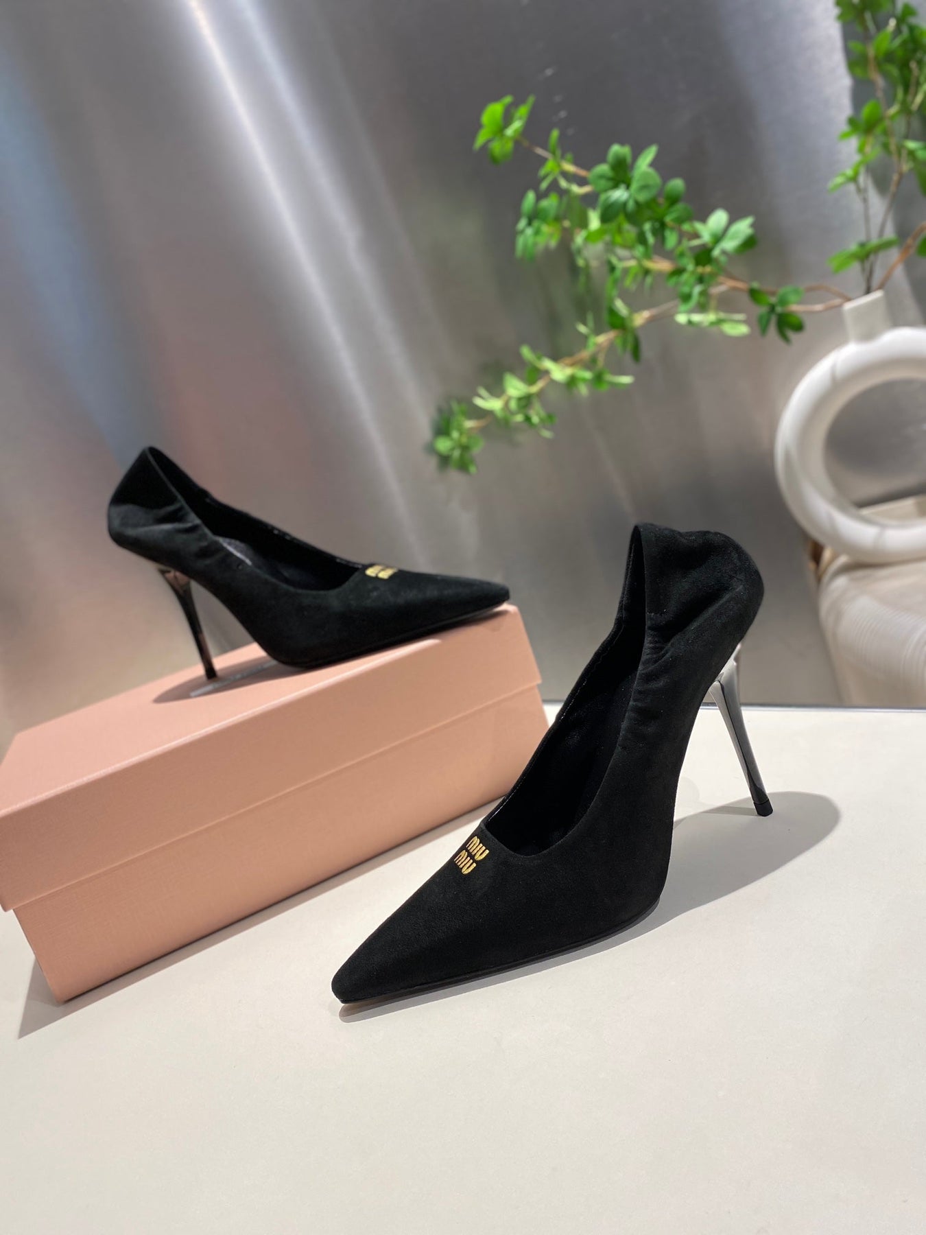 POINTED-TOE HIGH HEEL PUMPS IN BLACK SUEDE