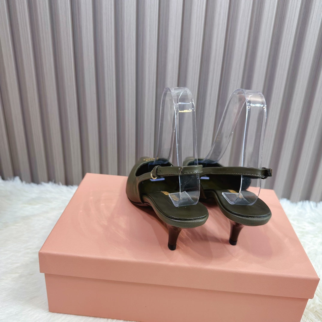 POINTED-TOE SLINGBACK IN ARMY GREEN LAMBSKIN