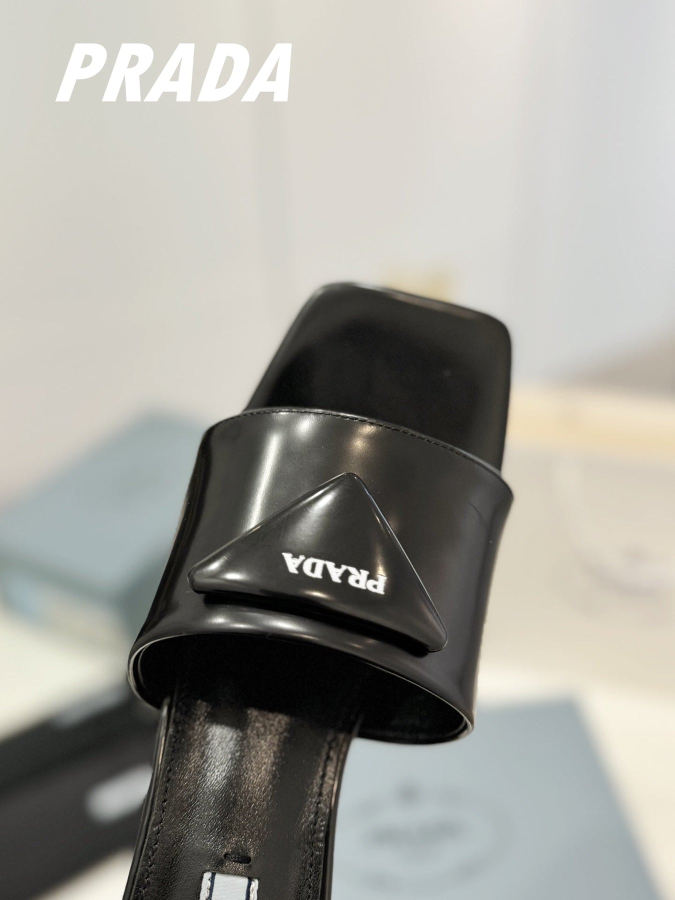 PRA BRUSHED LEATHER HEELED SLIDES BLACK