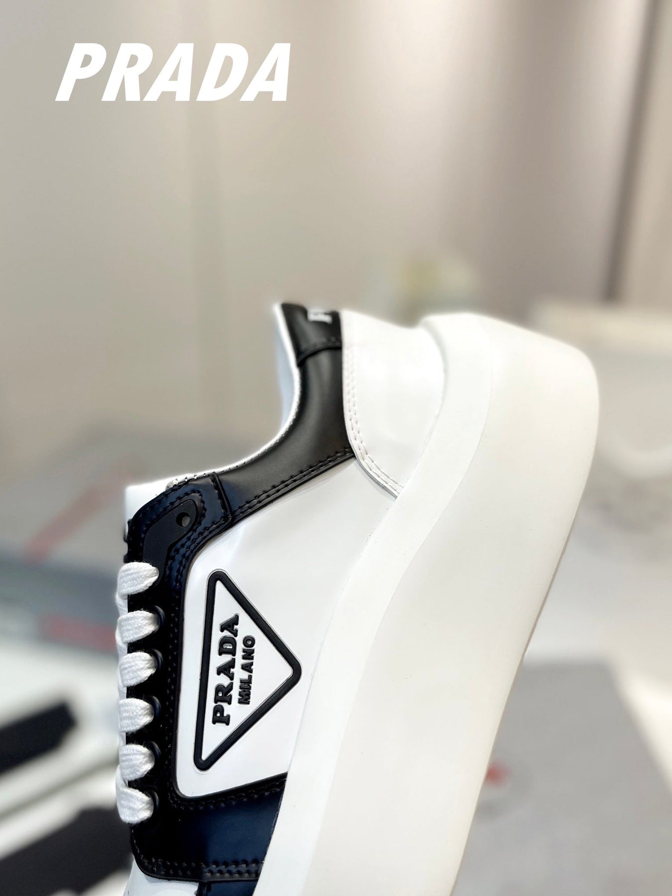 PRA DOWNTOWN THICK-SOLE SNEAKERS BLACK AND WHITE CALFSKIN