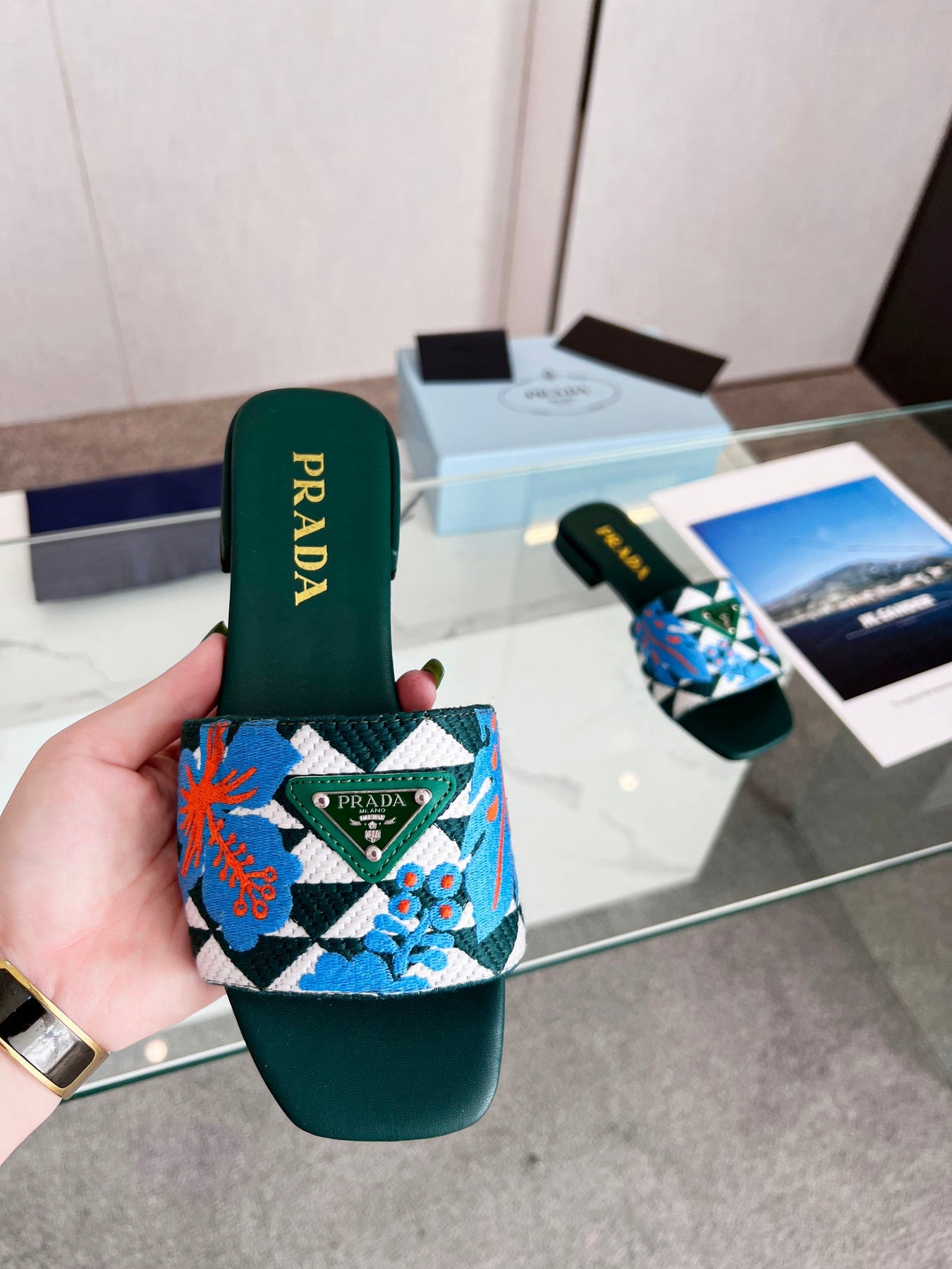 PRA EMBROIDERED SLIDES FLAT CASTLETON GREEN FABRIC