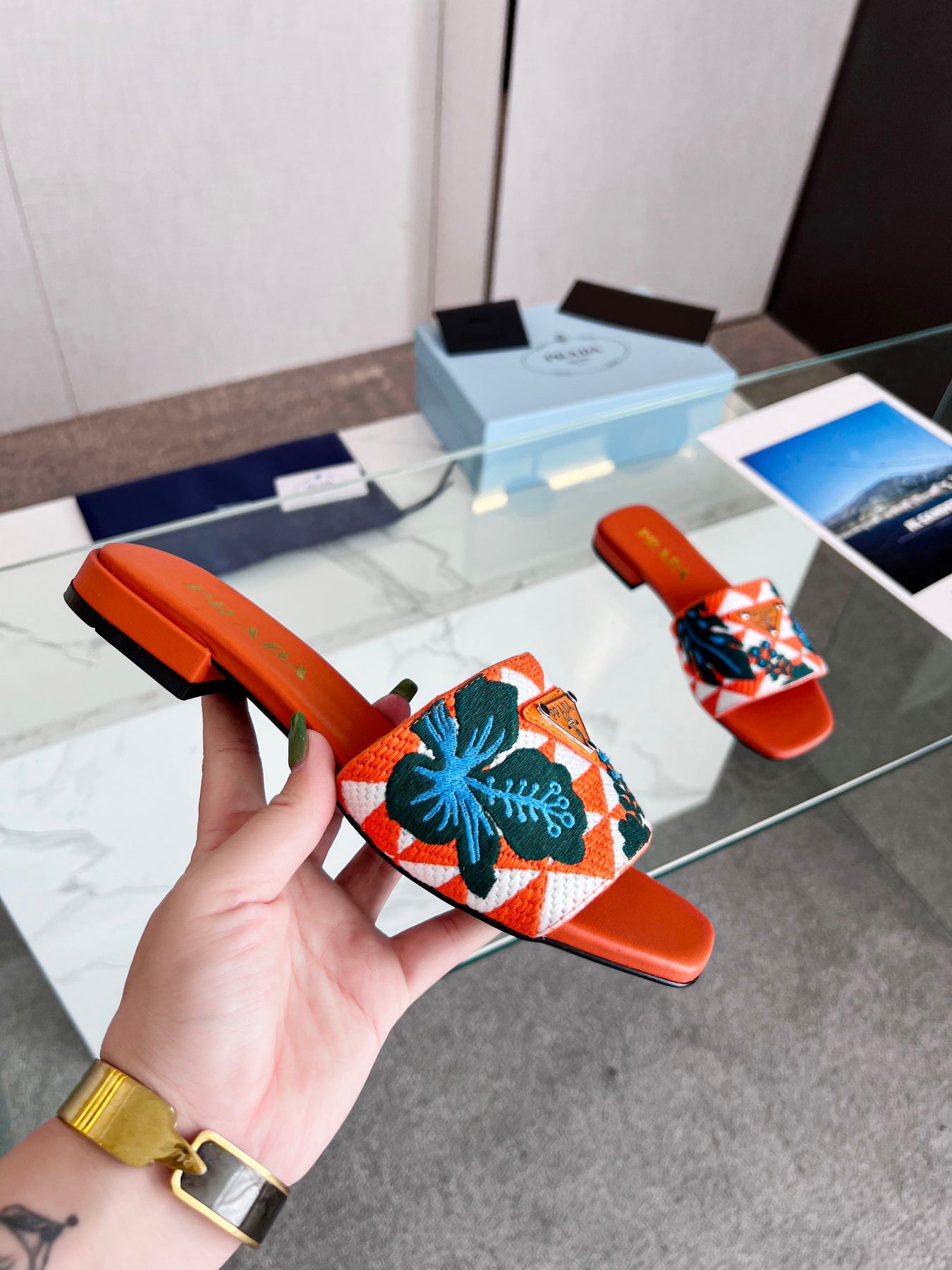 PRA EMBROIDERED SLIDES FLAT ORANGE FABRIC