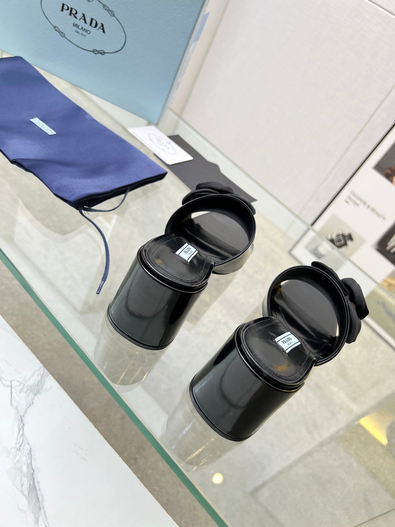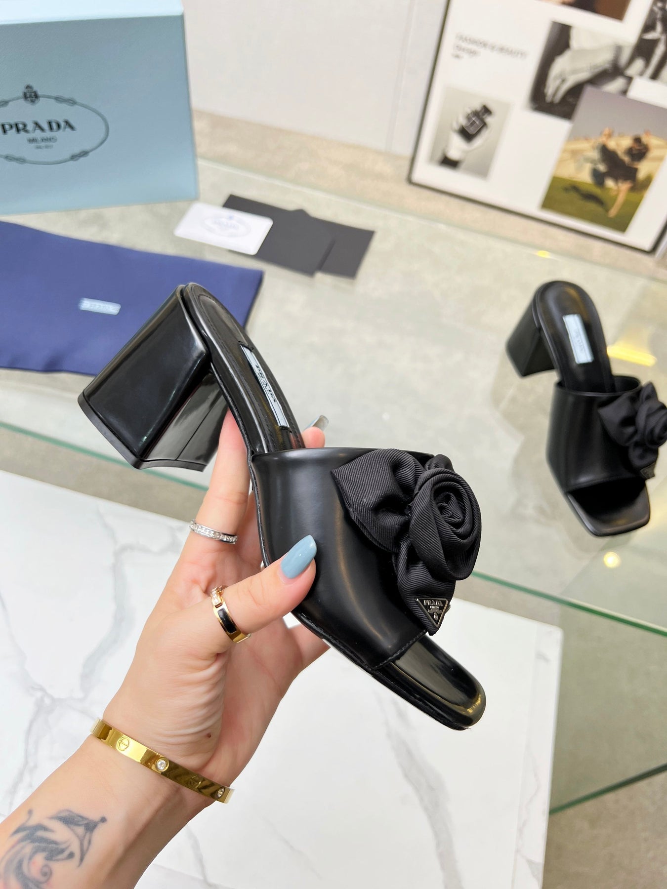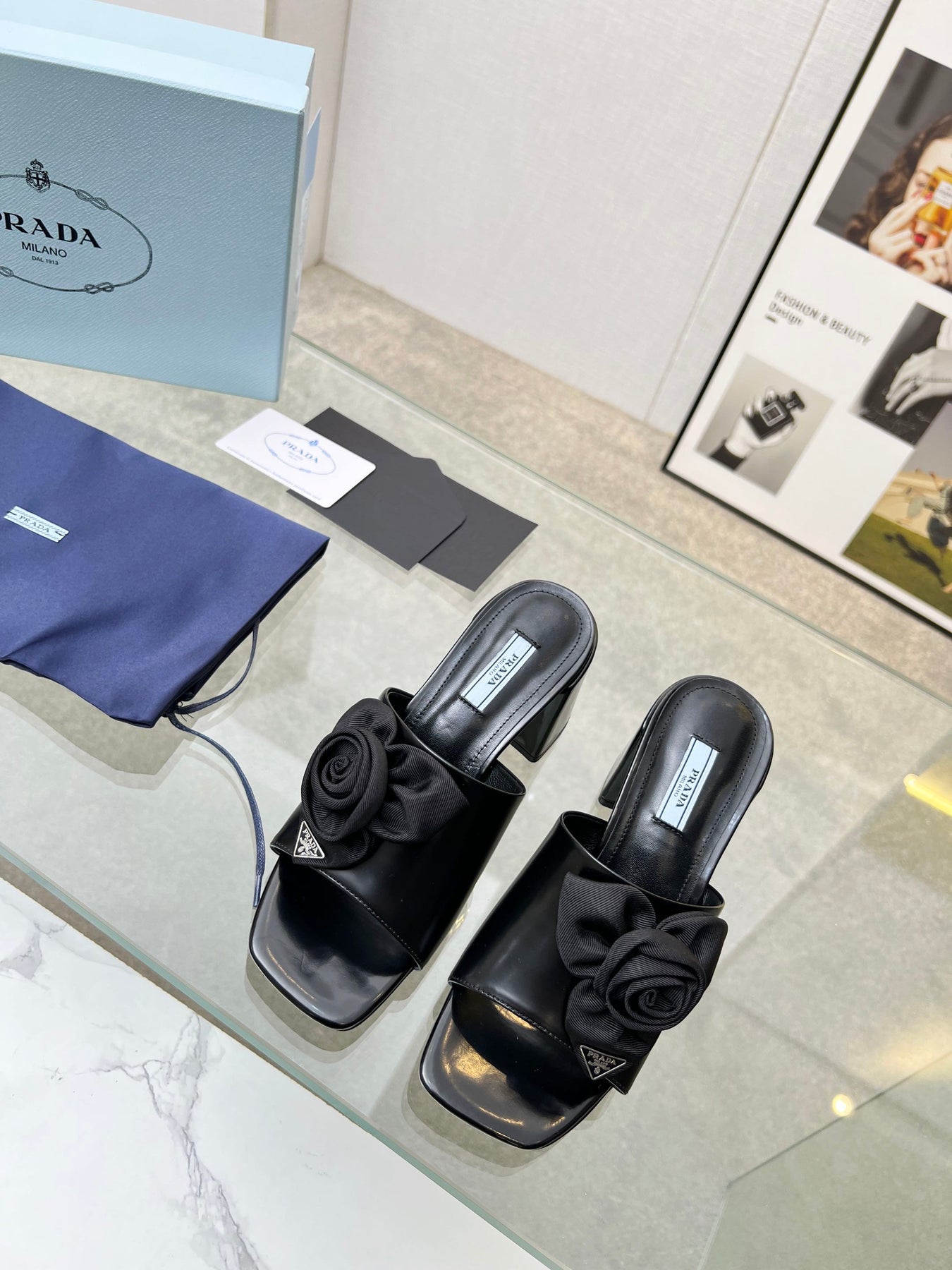 PRA FLOWER BLOCK HEELS 75 BLACK CALFSKIN