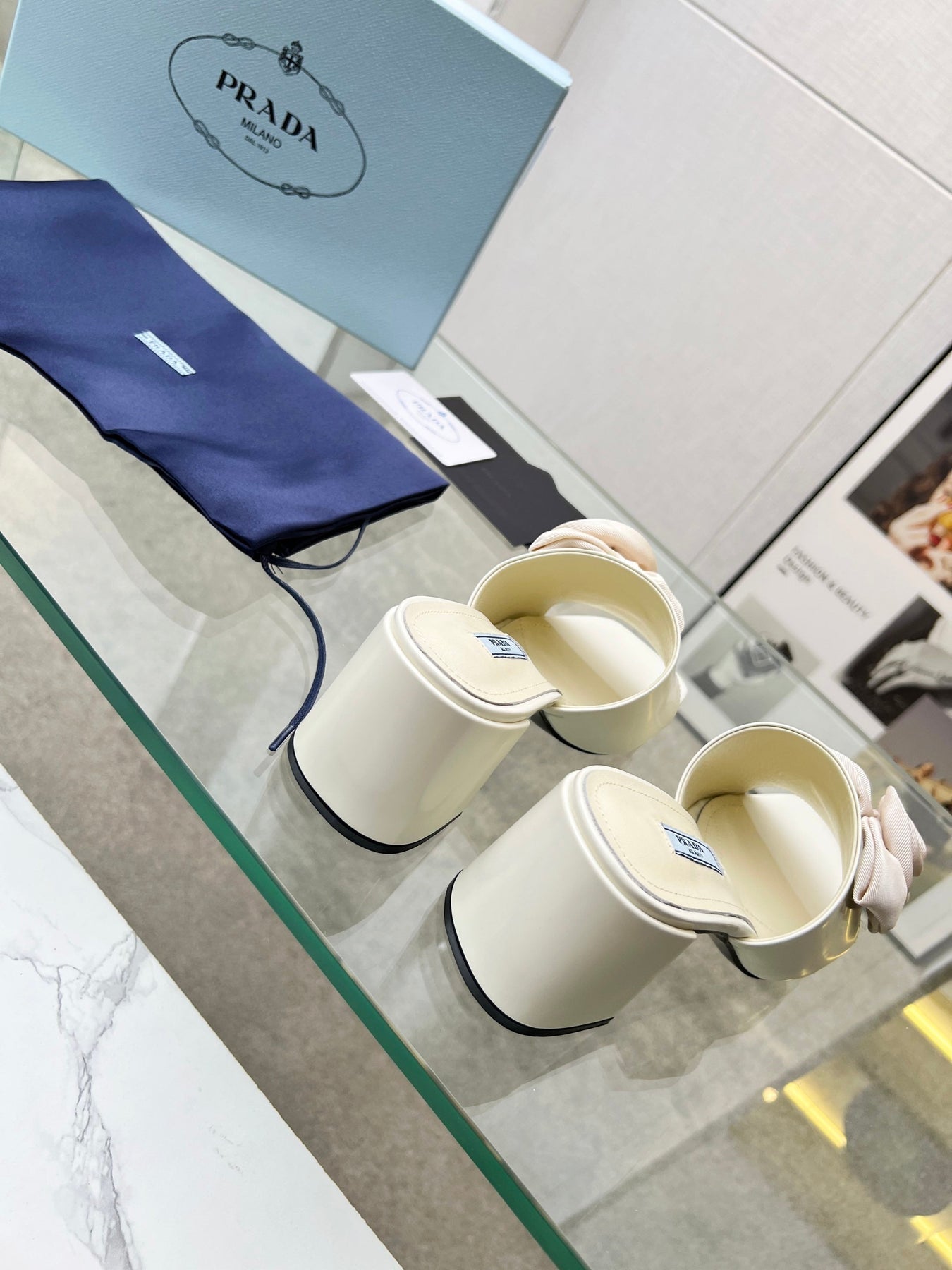 PRA FLOWER BLOCK HEELS 75 IVORY CALFSKIN