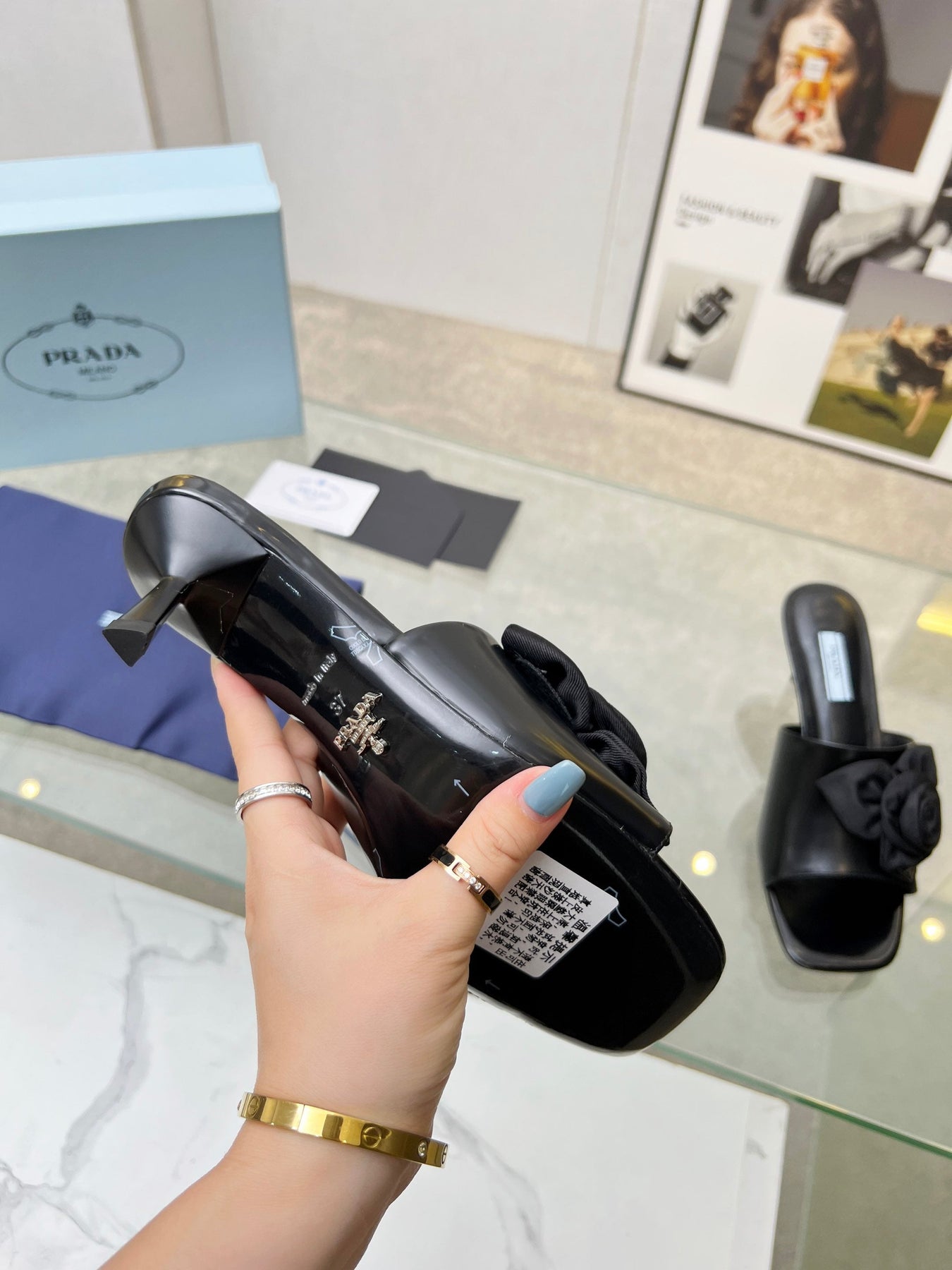 PRA FLOWER POINTED HEELS 55 BLACK CALFSKIN