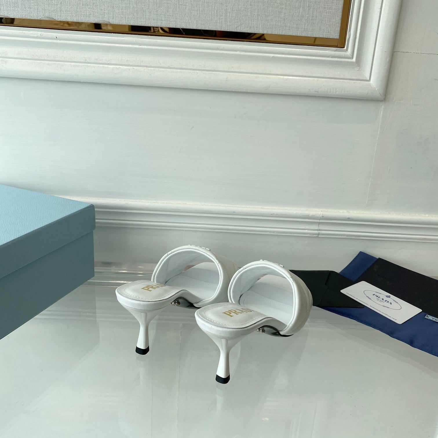 Pra Heeled Sandal 65 Pointed Sole Quilted White Leather
