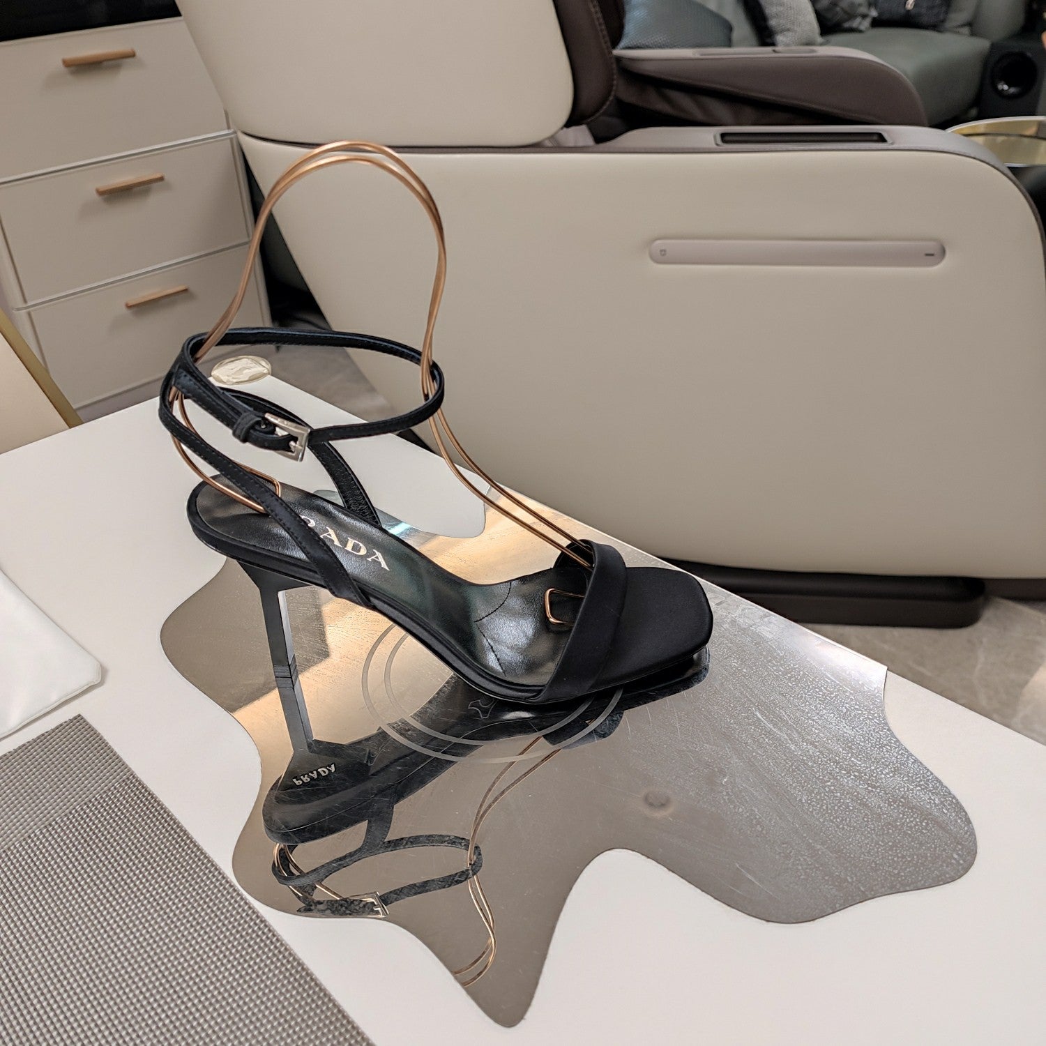 PRA HIGH-HEELED SANDALS BLACK SATIN