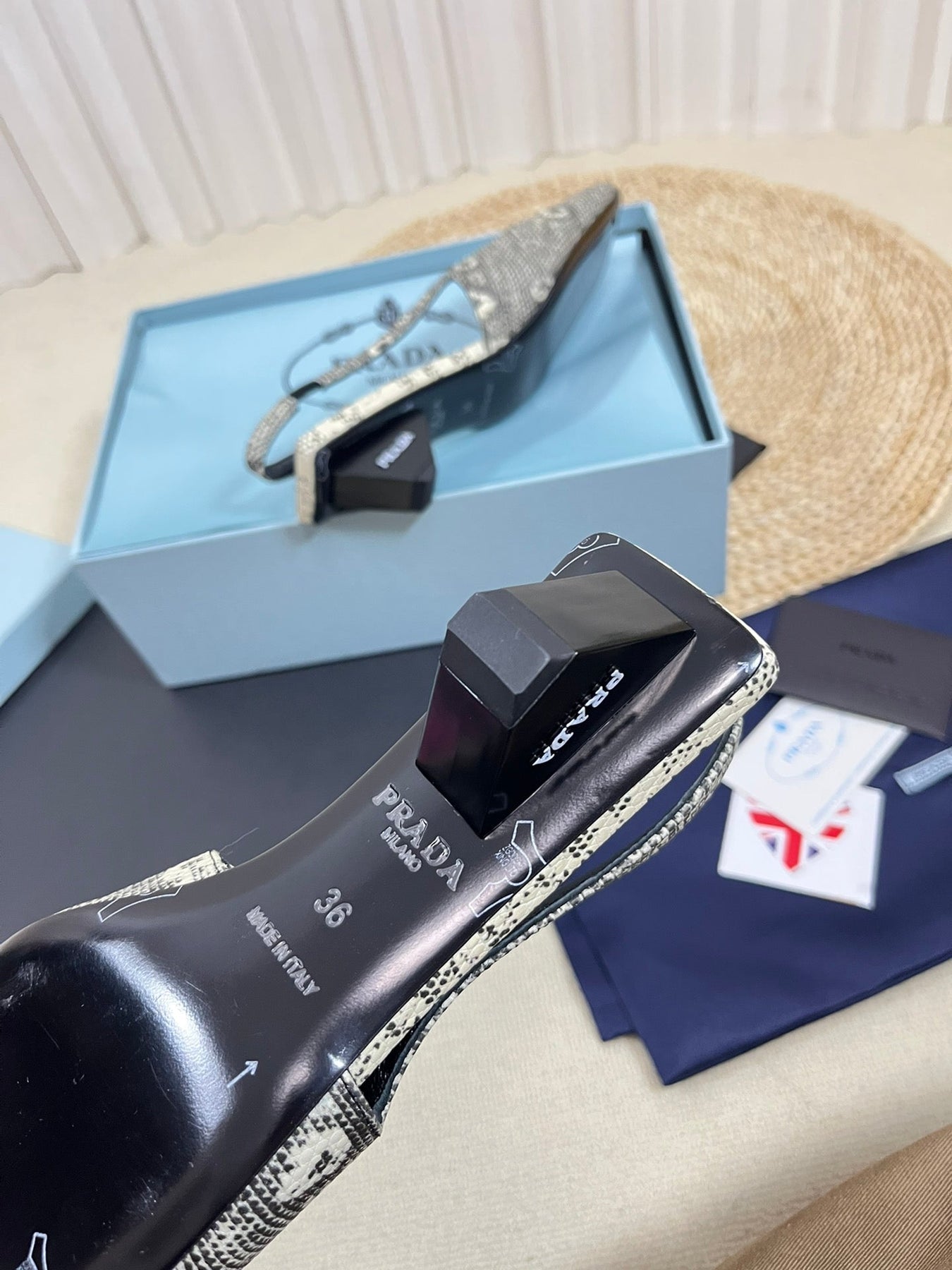 PRA SQUARE TOE SLINGBACK PUMPS SNAKESKIN MOTIF SATIN