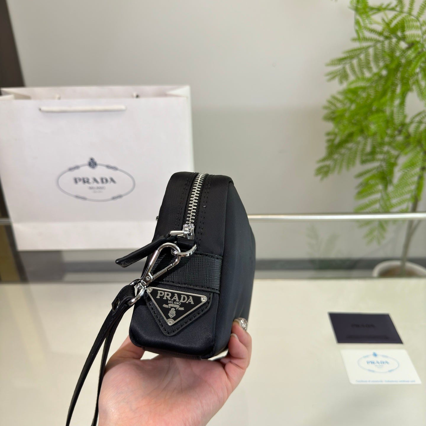 PRINTED LOGO CLUTCH 24 IN BLACK RE-NYLON