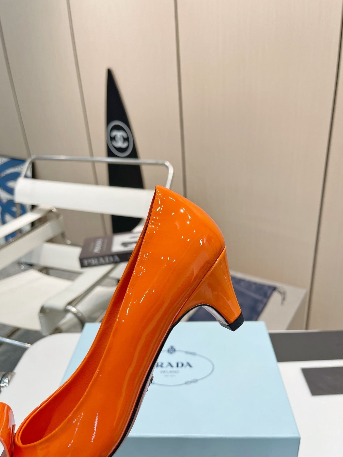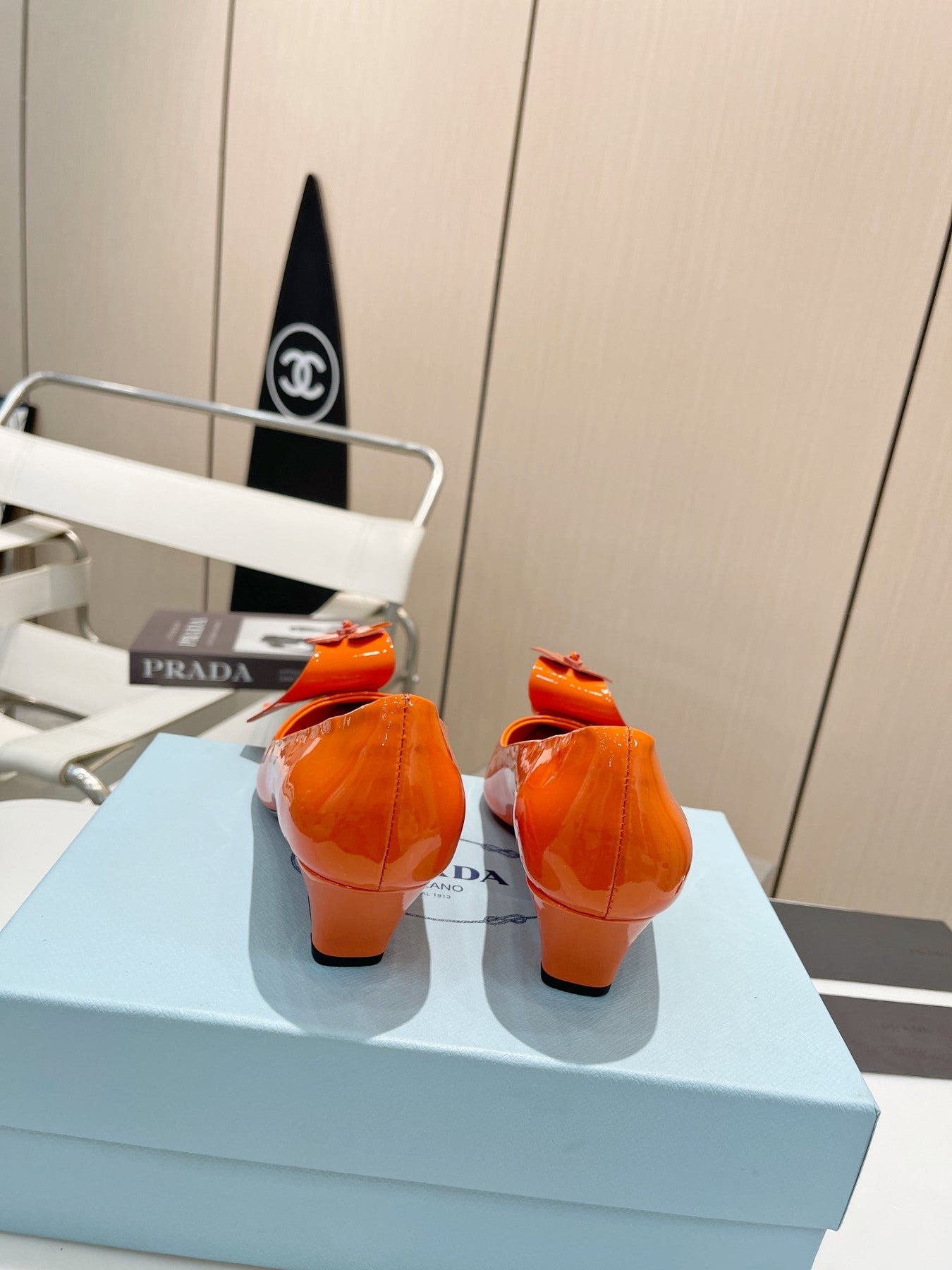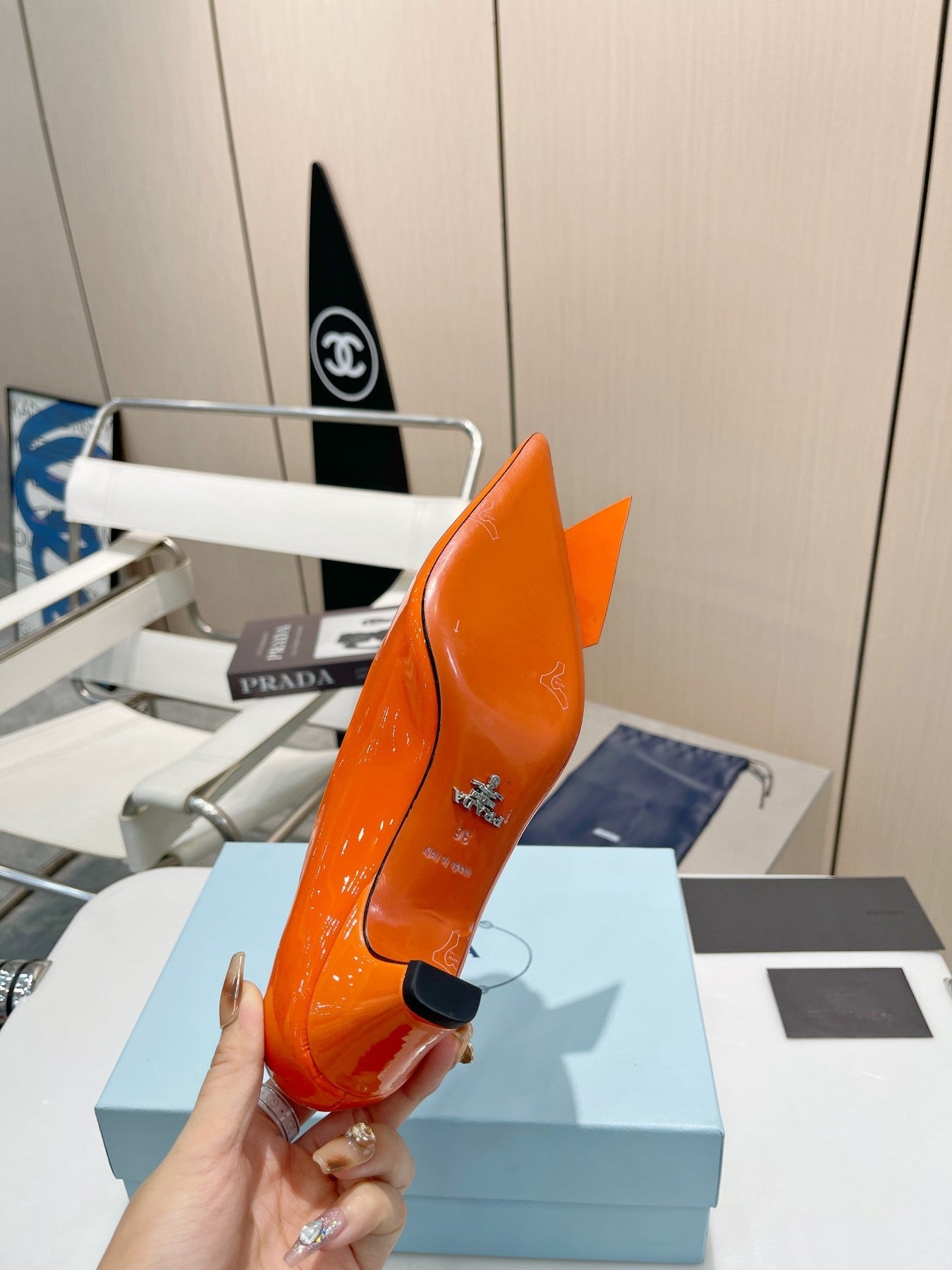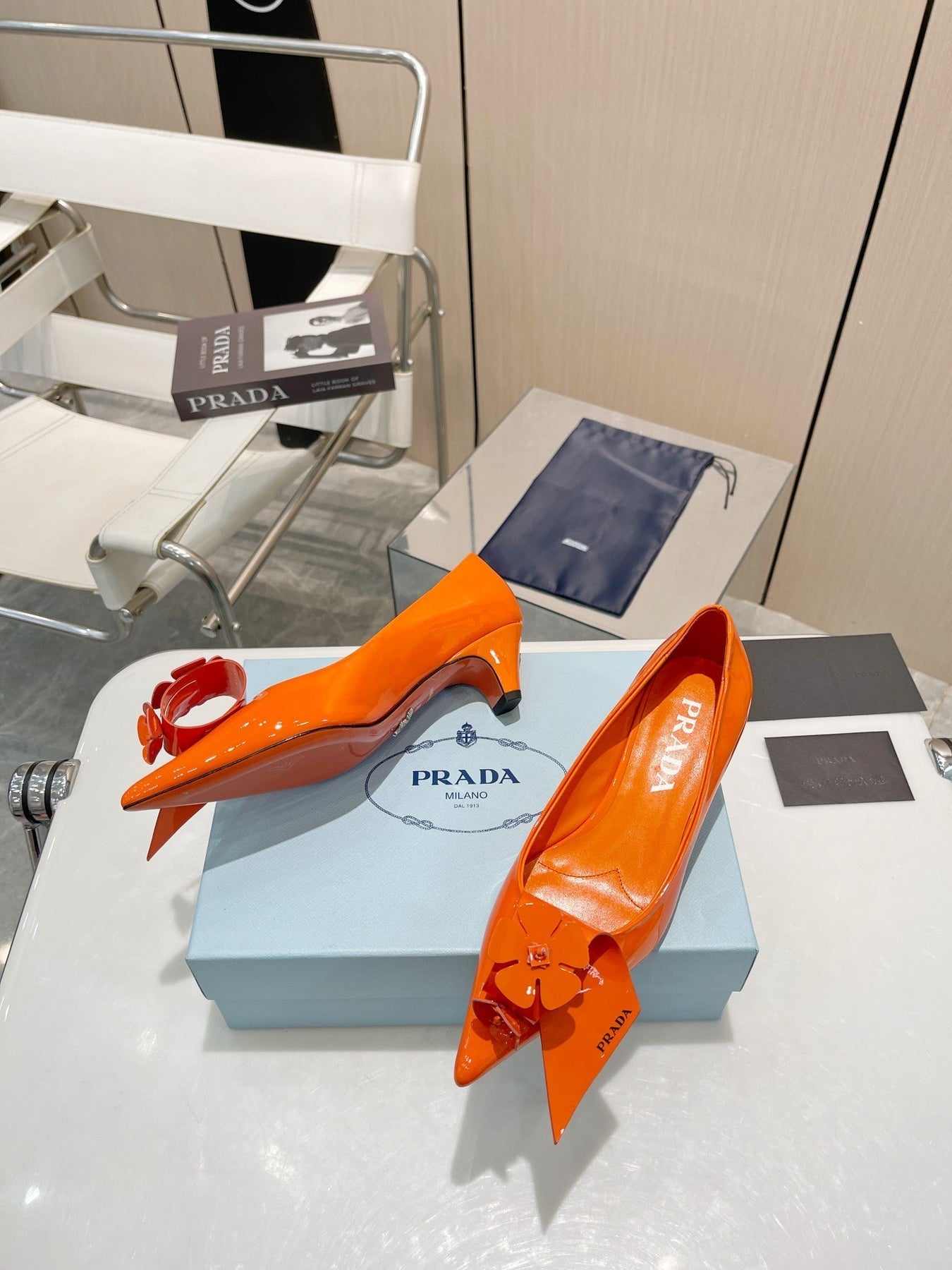 PUMPS KITTEN HEEL IN ORANGE PATENT CALFSKIN ATTACHED FLOWERS