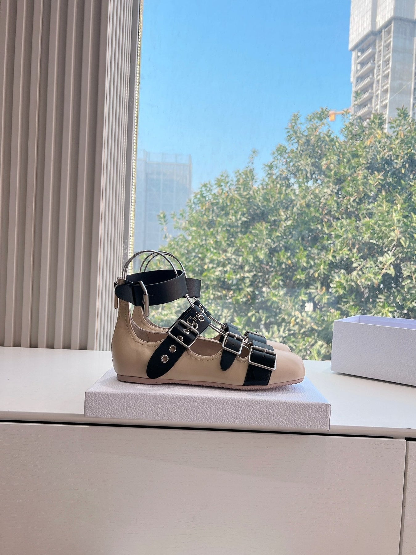 PUNK BALLET FLAT IN BLACK MIX CAMEL BEIGE CALFSKIN