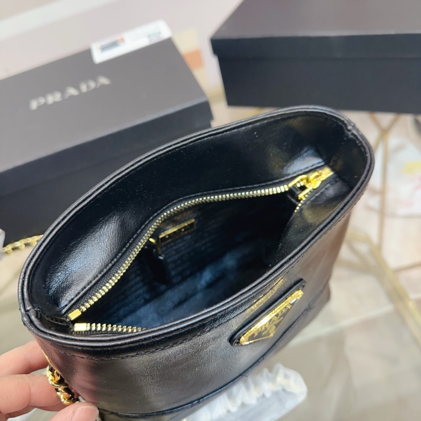 QUILTED CHAIN MINI HOBO BAG 19 IN SHINY BLACK CALFSKIN