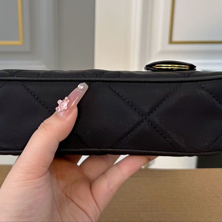 QUILTED HOBO SHOULDER BAG 22 IN BLACK RE-NYLON GOLD HARDWARE