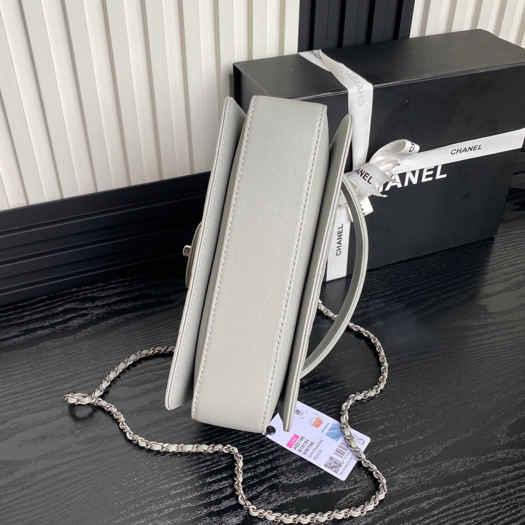RETRO STYLE FLAP BAG 22 IN RHINO GRAY GRAINED CALFSKIN GOLD HARDWARE