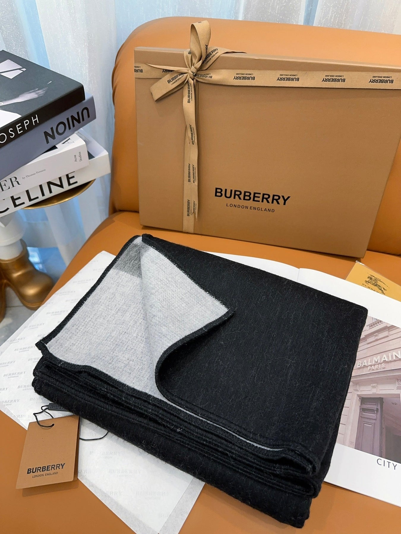 REVERSIBLE CHECK CASHMERE CAPE BLACK AND LIGHT GRAY 410135
