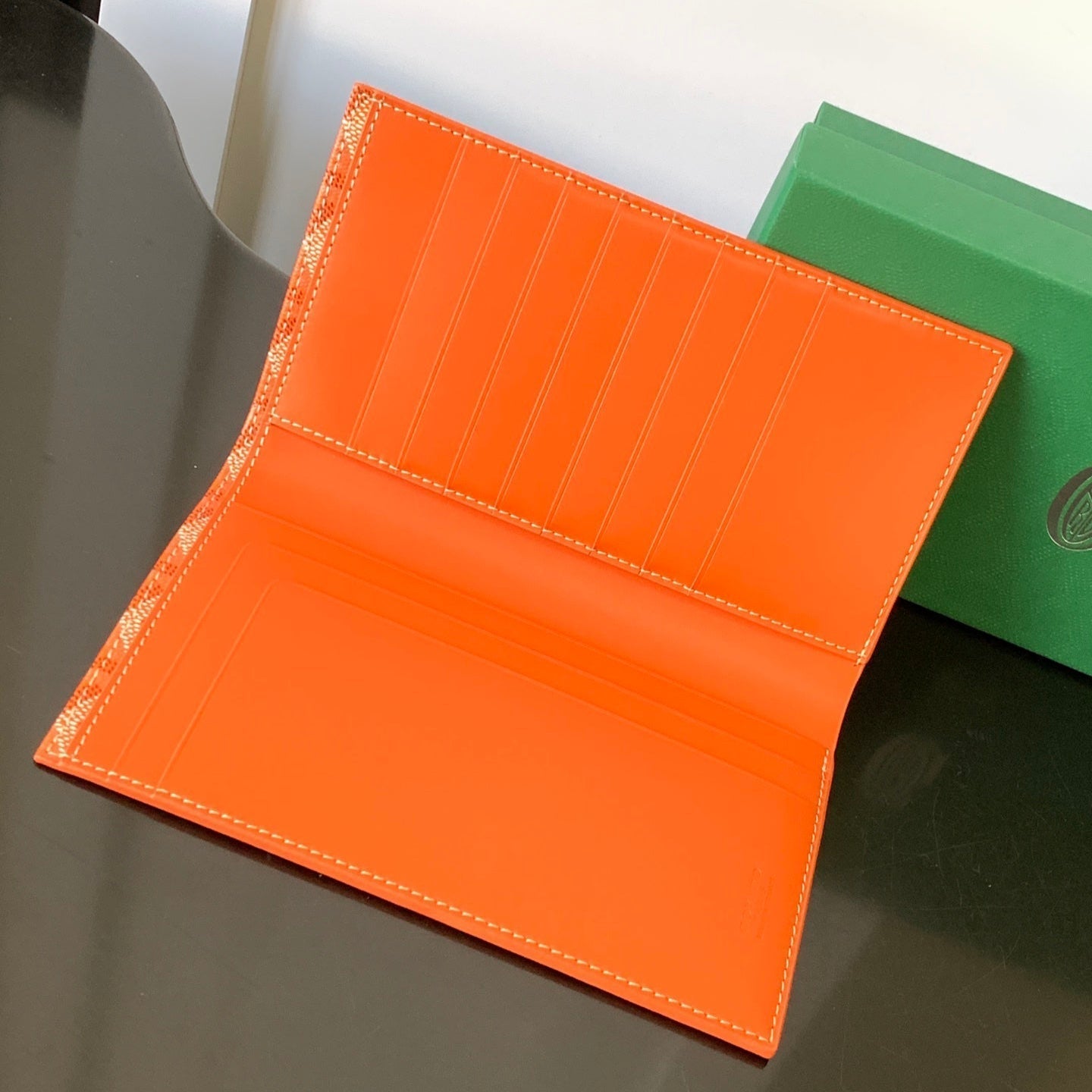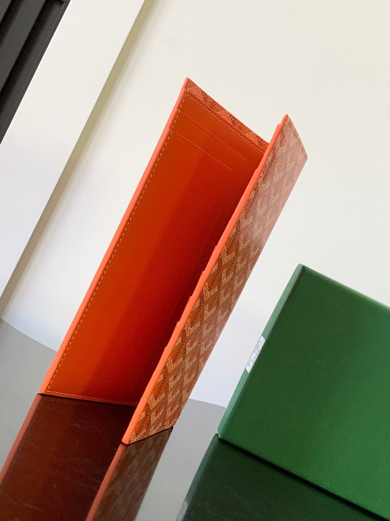 RICHELIEU CHECKBOOK WALLET 19 IN RED ORANGE GOYARDINE CANVAS AND CALFSKIN