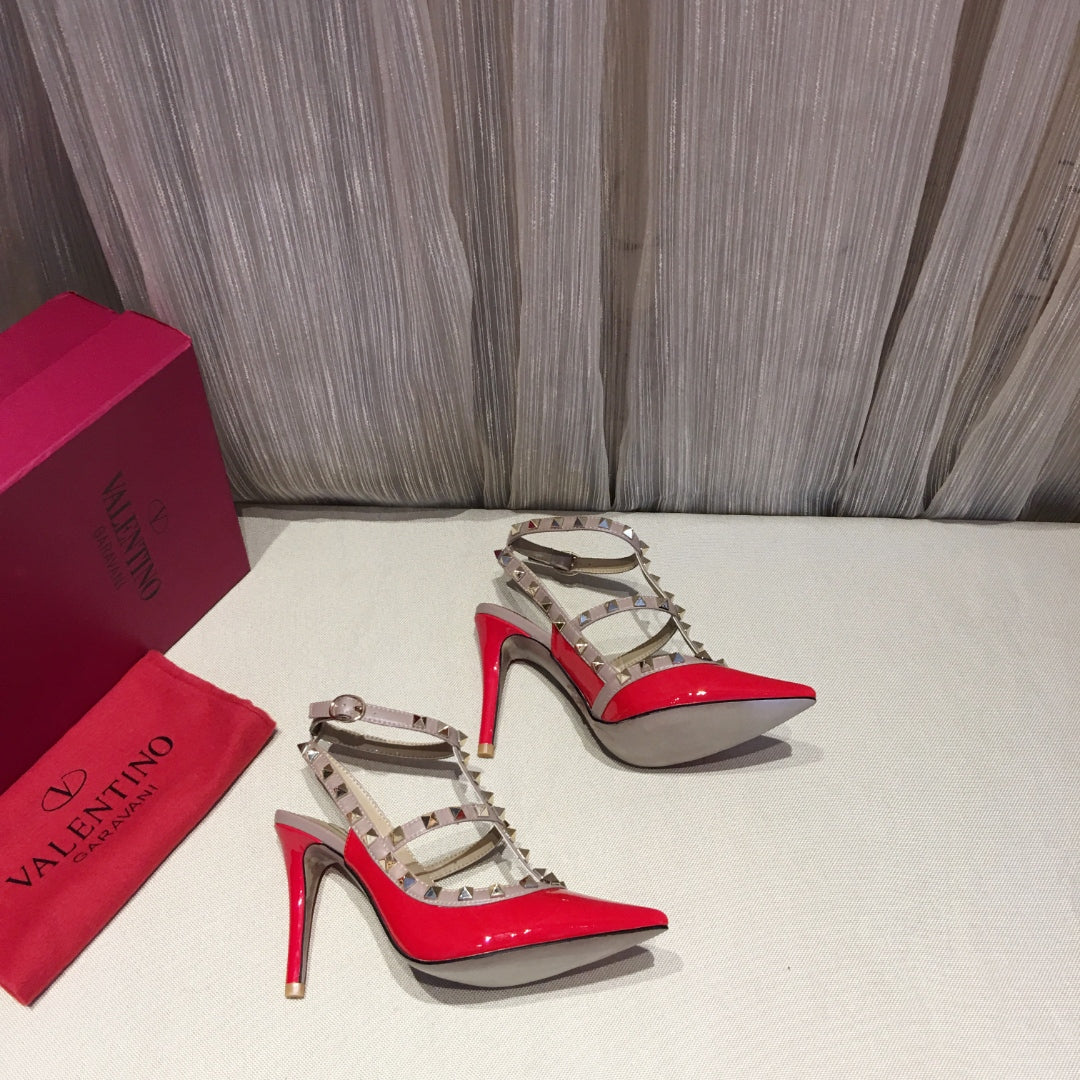 ROCKSTUD CAGED HIGH PUMP IN CHERRY RED MIX LIGHT PINK PATENT CALFSKIN 100 MM