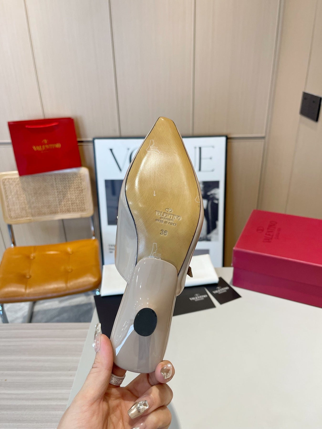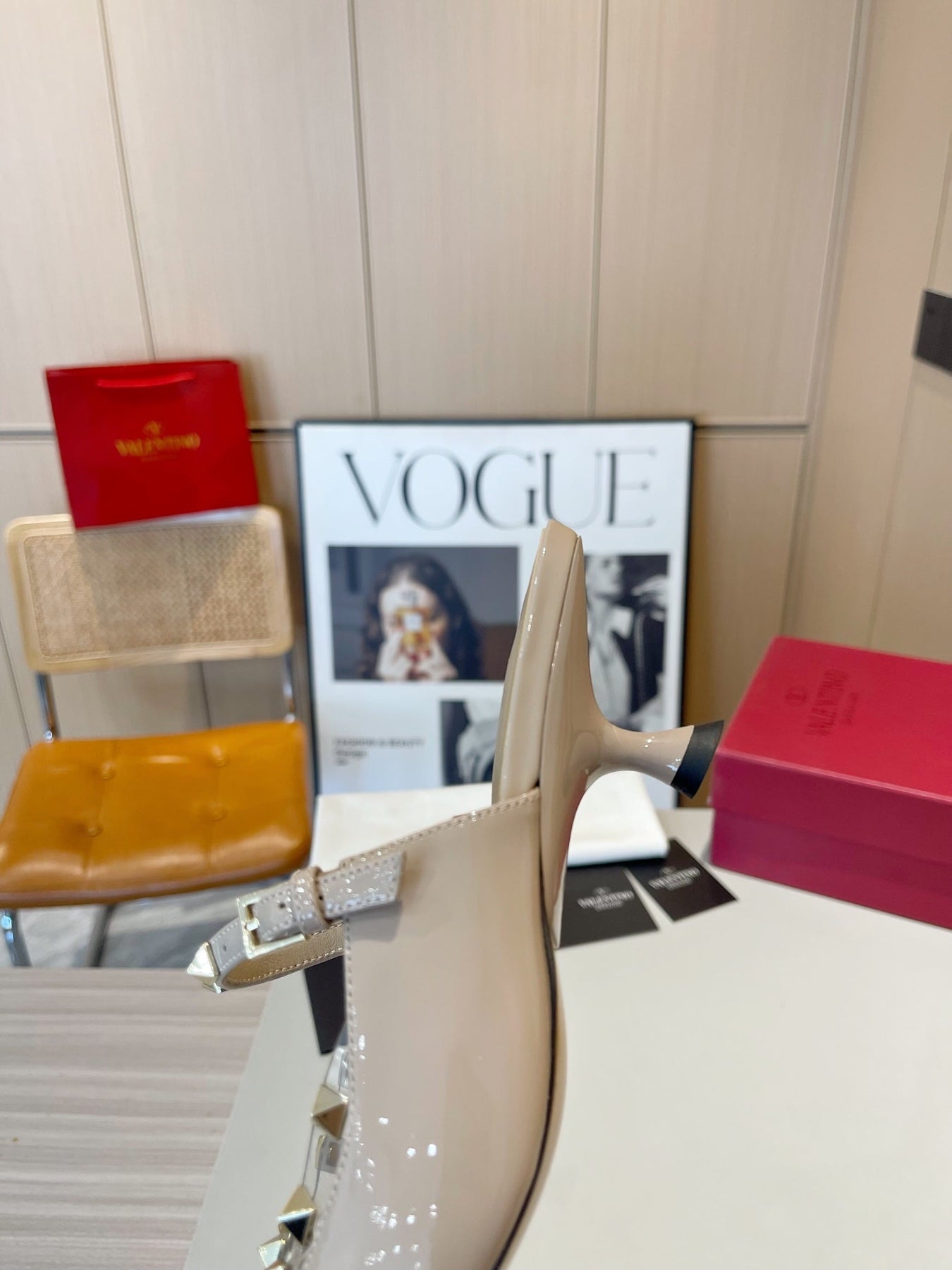 ROCKSTUD CAGED MULES 5 CM IN BISQUE BEIGE CALFSKIN